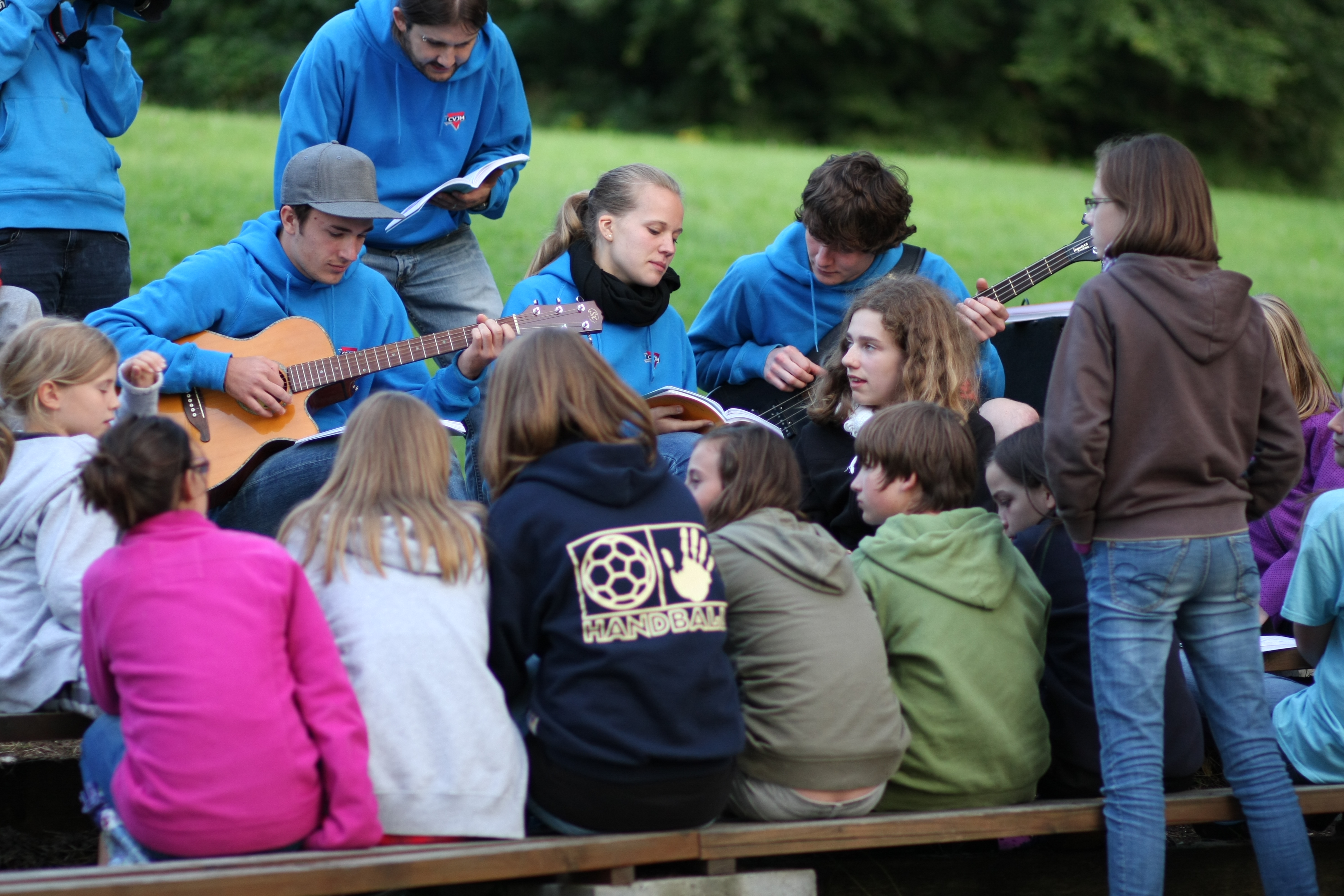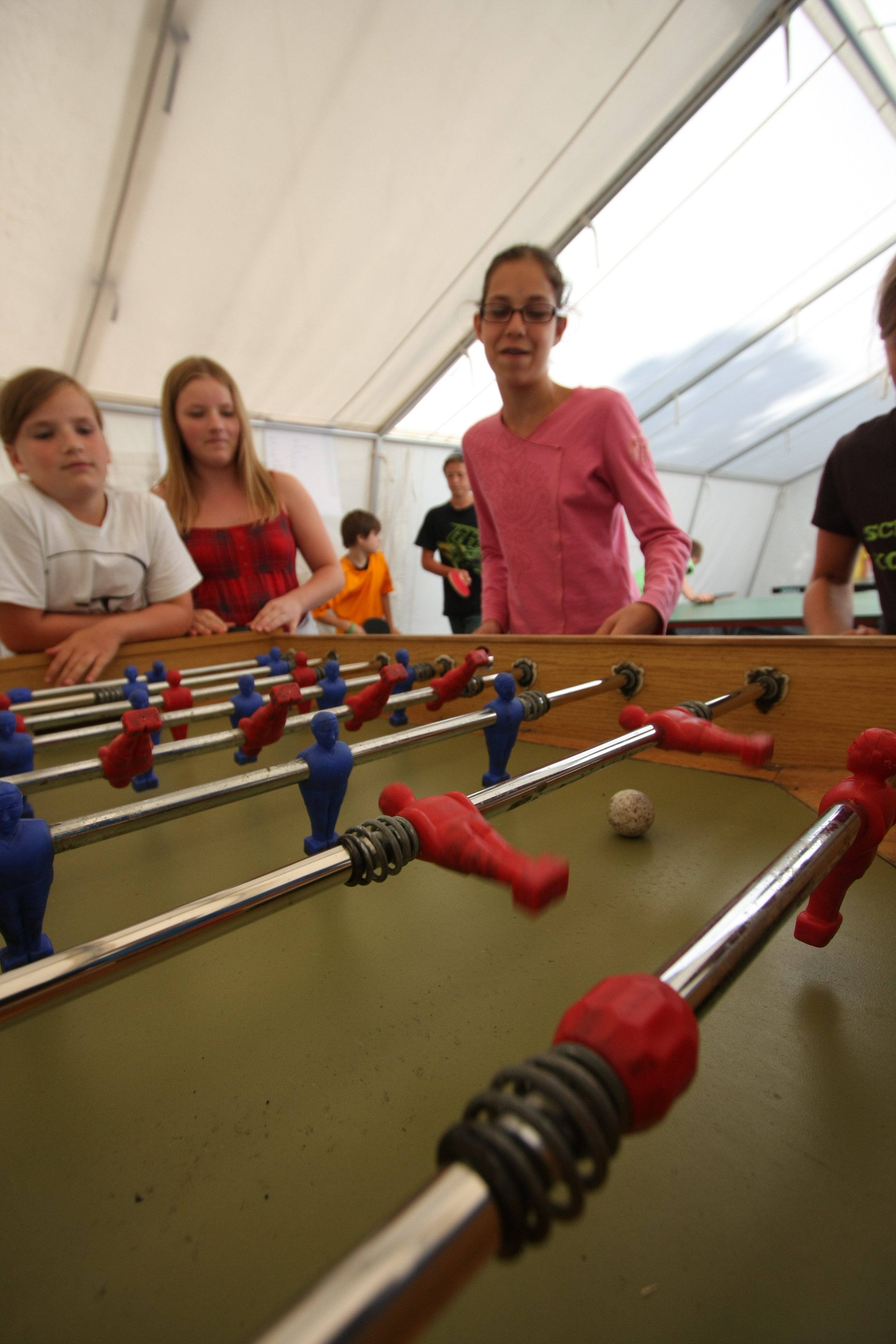 Bei wechselhaften Wetter fanden am Sonntagmittag die Tischkicker-, Tischtennis-, Jakolo- und Dartturniere statt. Als gegen Abend sich die Sonne zeigte, wurde gemeinsam mit externen Helfen gegrillt. Bis zum Sonnenuntergang wurde dann am Lagerfeuer zusammen musiziert, ausgiebig gekickt oder fleissig an den Palettenburgen gearbeitet.