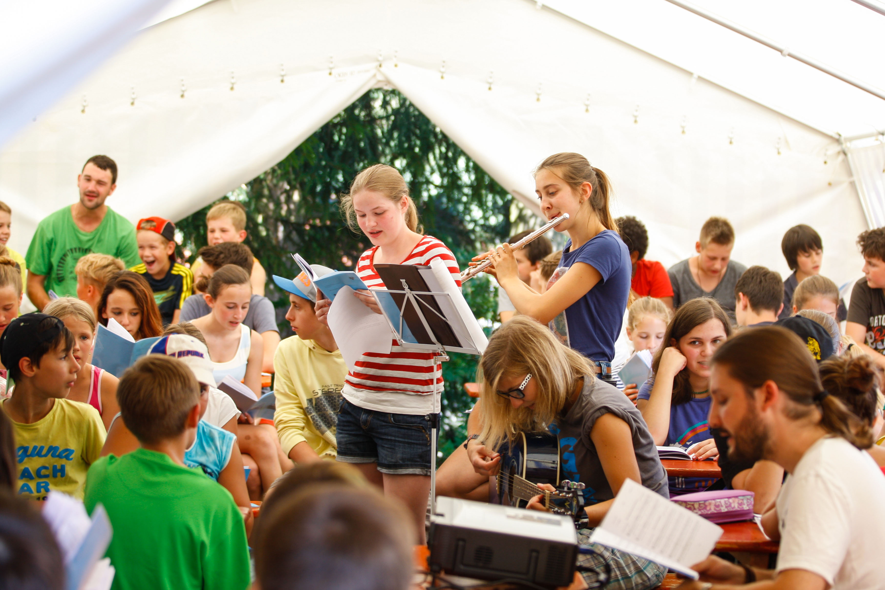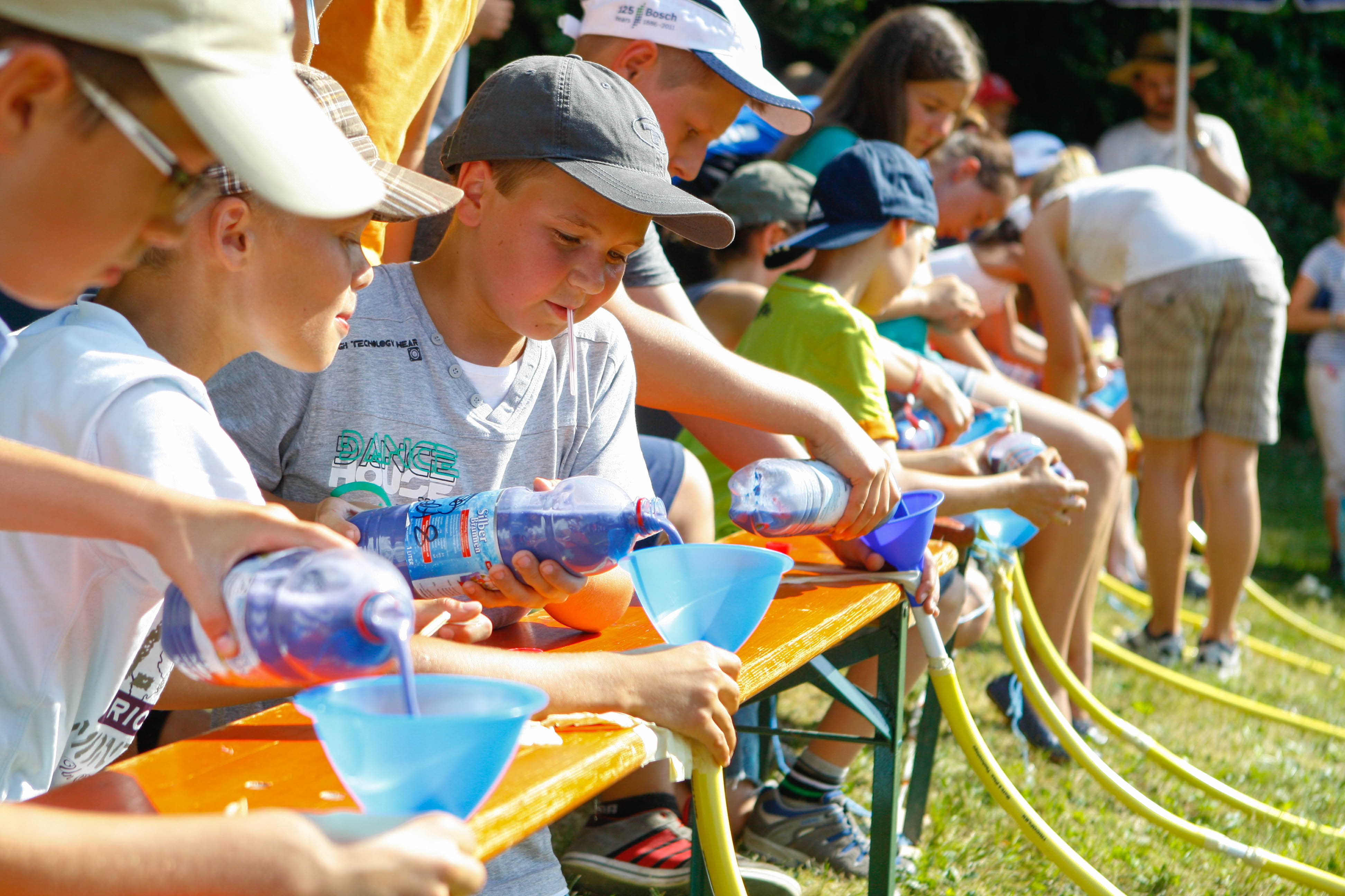 Der erste erlebnisreiche Lagertag liegt nun hinter uns. Morgens stand das Bibelerlebnisprogramm mit dem Thema „Schöpfung“ auf dem Programm. Nachdem Mittagessen wurde mit Rücksicht auf die Hitze der heutige Programmpunkt „Cool Bauing“ auf dem Lagergelände gespielt. Die Aufgabe der Kinder war es eine Pipeline zum Wassertransport zu bauen.Die Rohstoffe dafür mussten allerdings erst an Stationen erspielt oder im nahen Wald gesammelt werden.