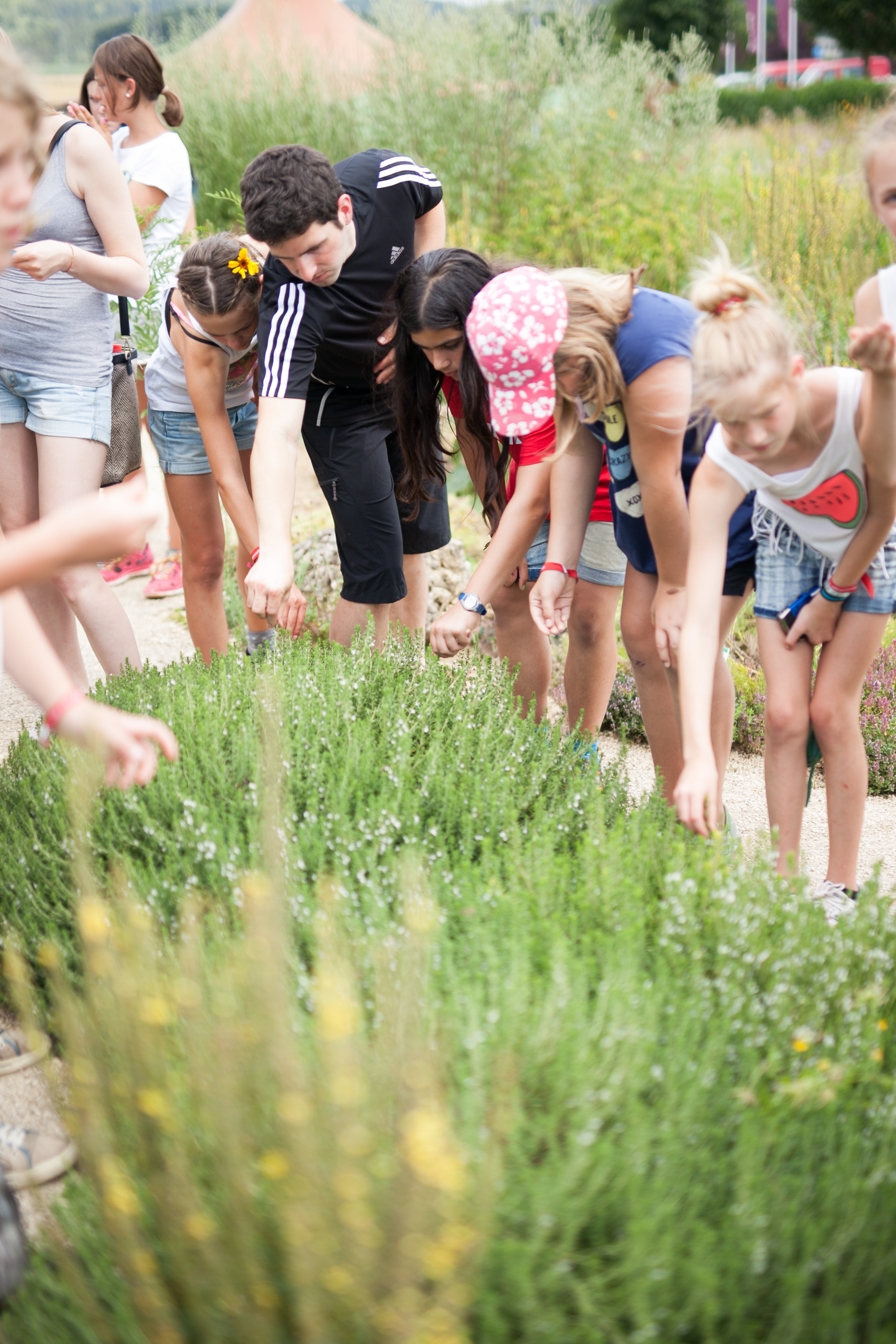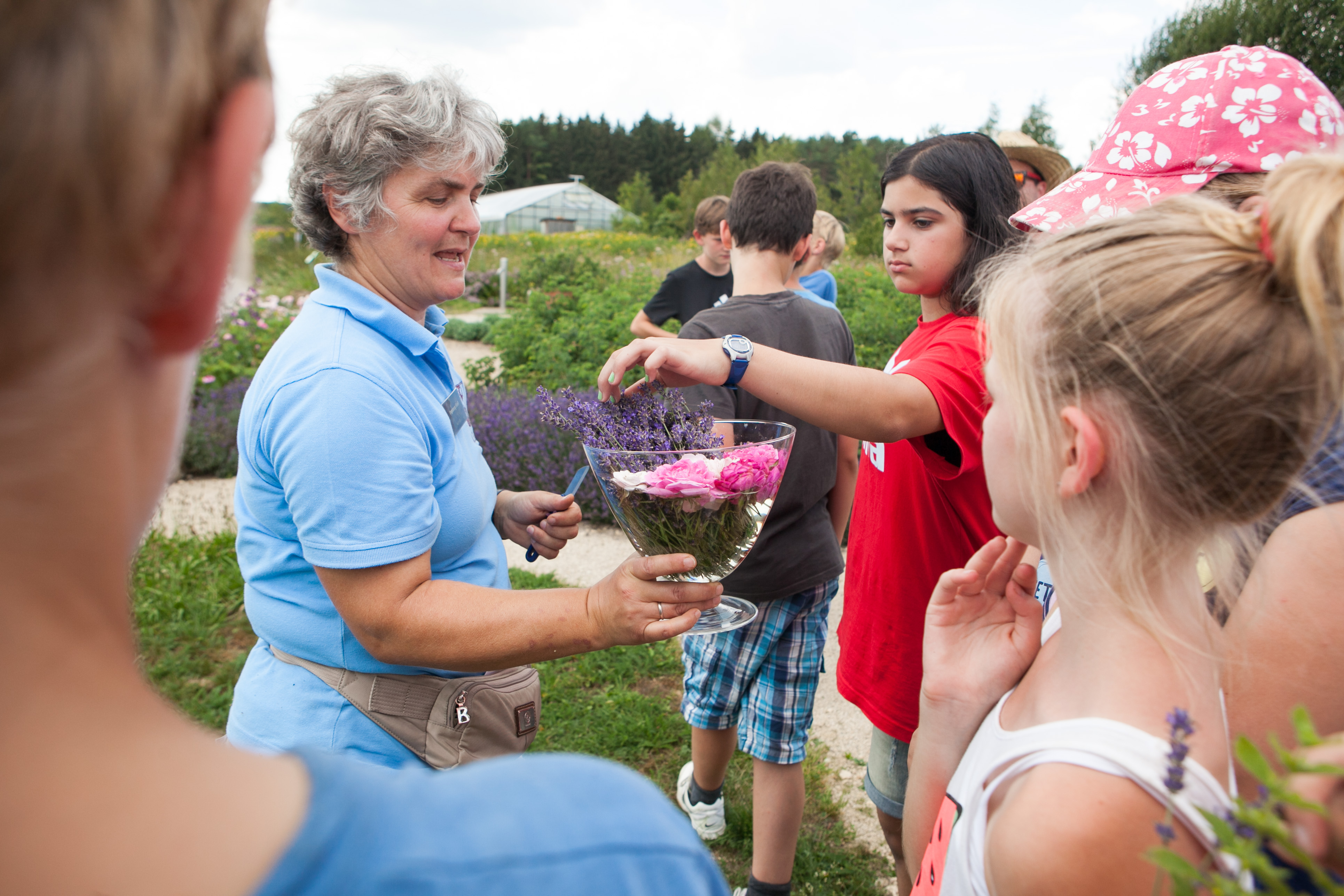 Was ist eigentlich Erdbeerspinat? Welche Pflanze hilft bei Mückenstichen? Wie schmeckt eine lilafarbene Karotte? All diese Fragen konnten heute bei einer Führung im Kräuter- und Gemüsegarten von Alb-Gold beantwortet werden. Vor und nach den Führungen war genug Zeit sich im Schatten auszuruhen oder sich auf dem Spielplatz auszutoben.