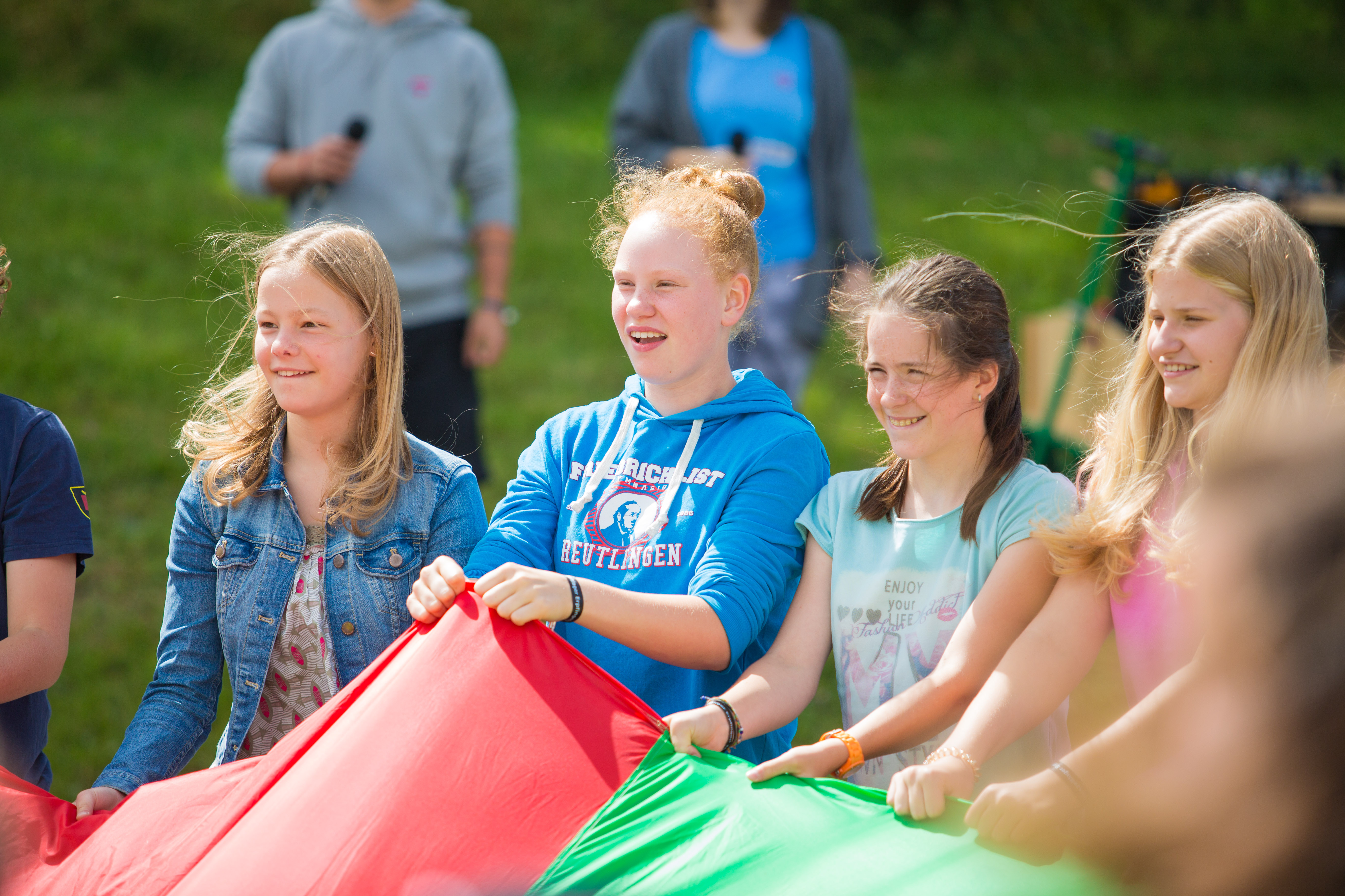 Schnaubend öffnet der Bus seine Türen und die Kinder nehmen das Zeltlagergelände in Besitz. Sofort werden Wiedersehensgrüße ausgetauscht.