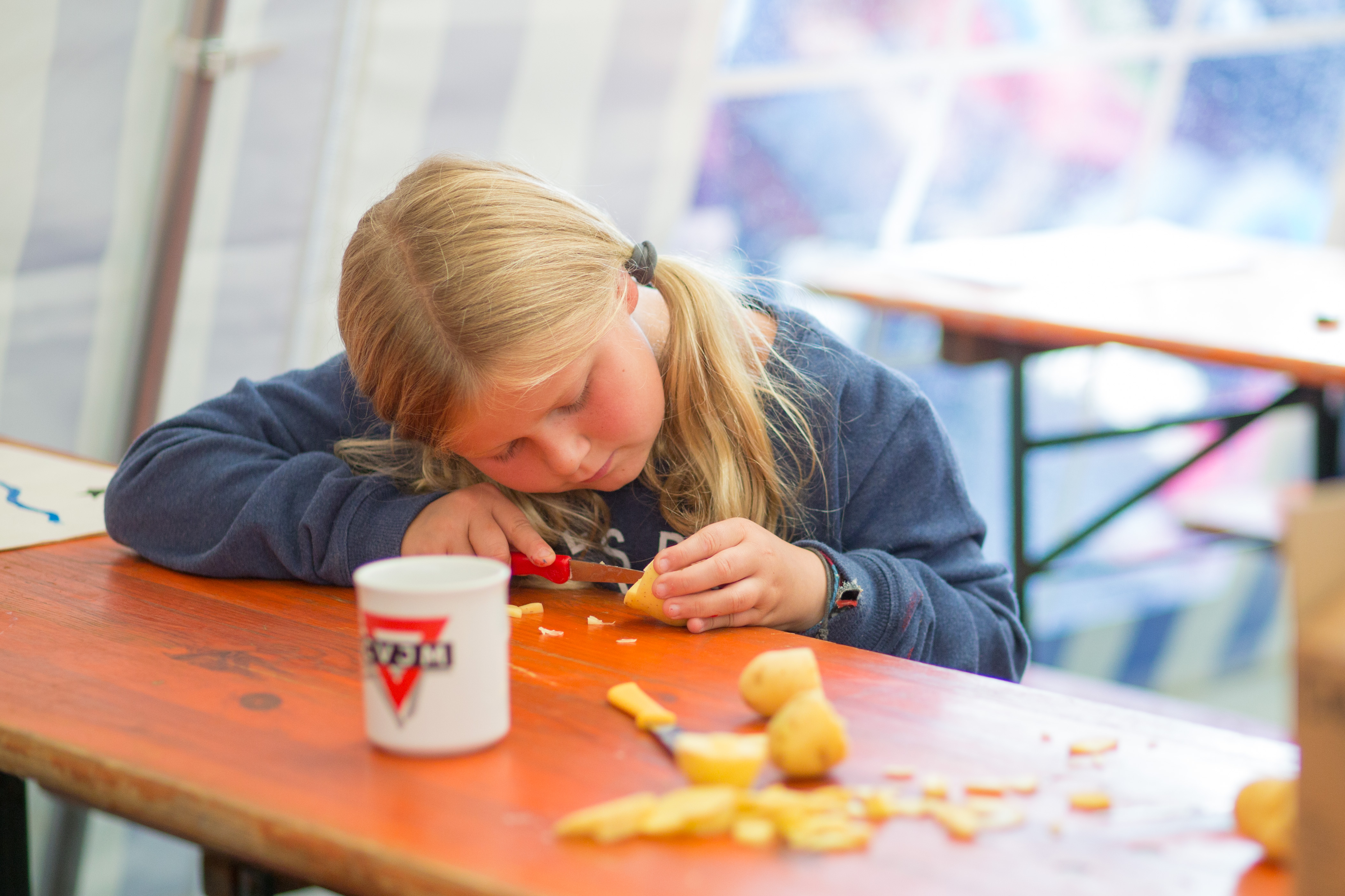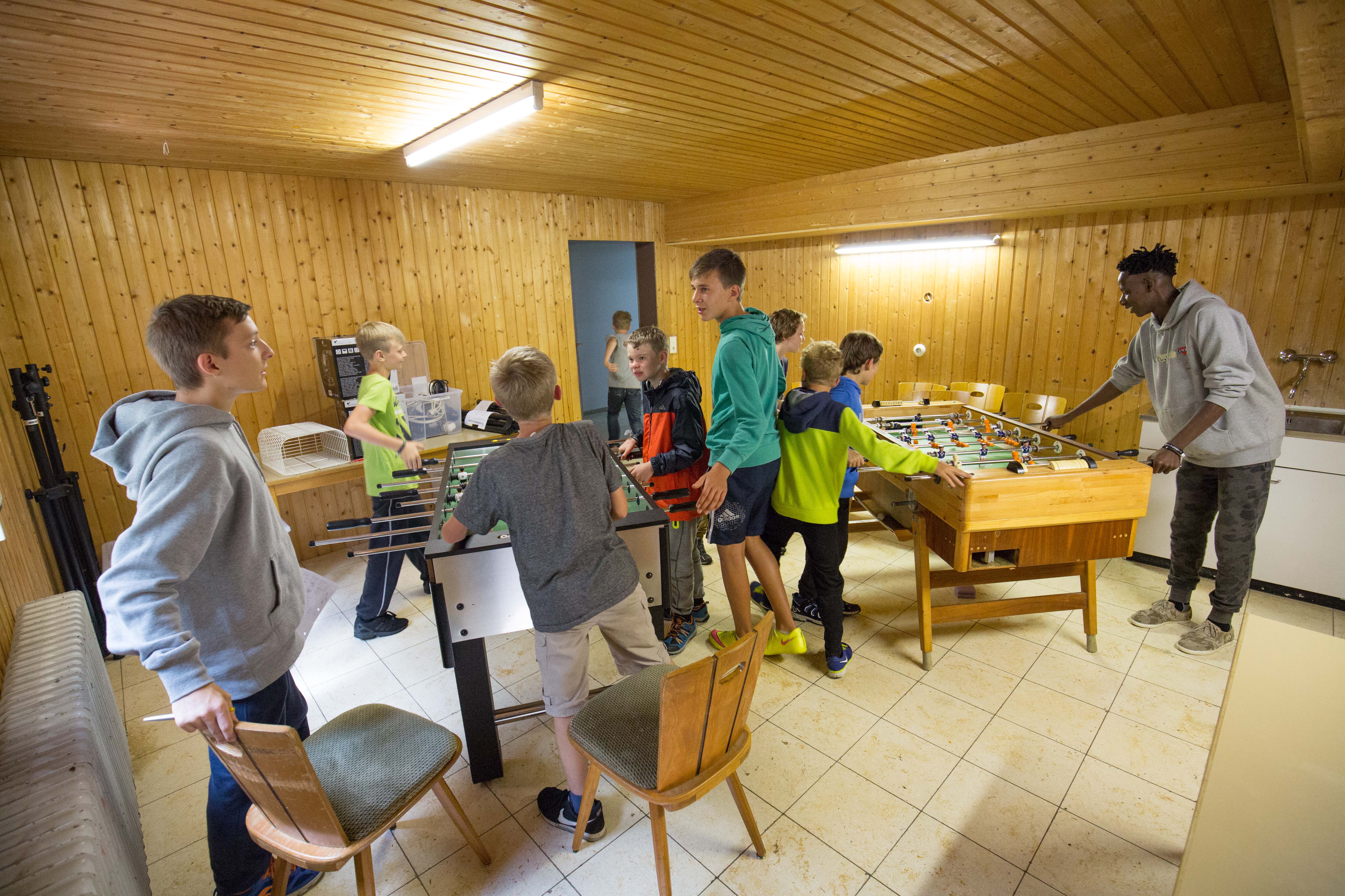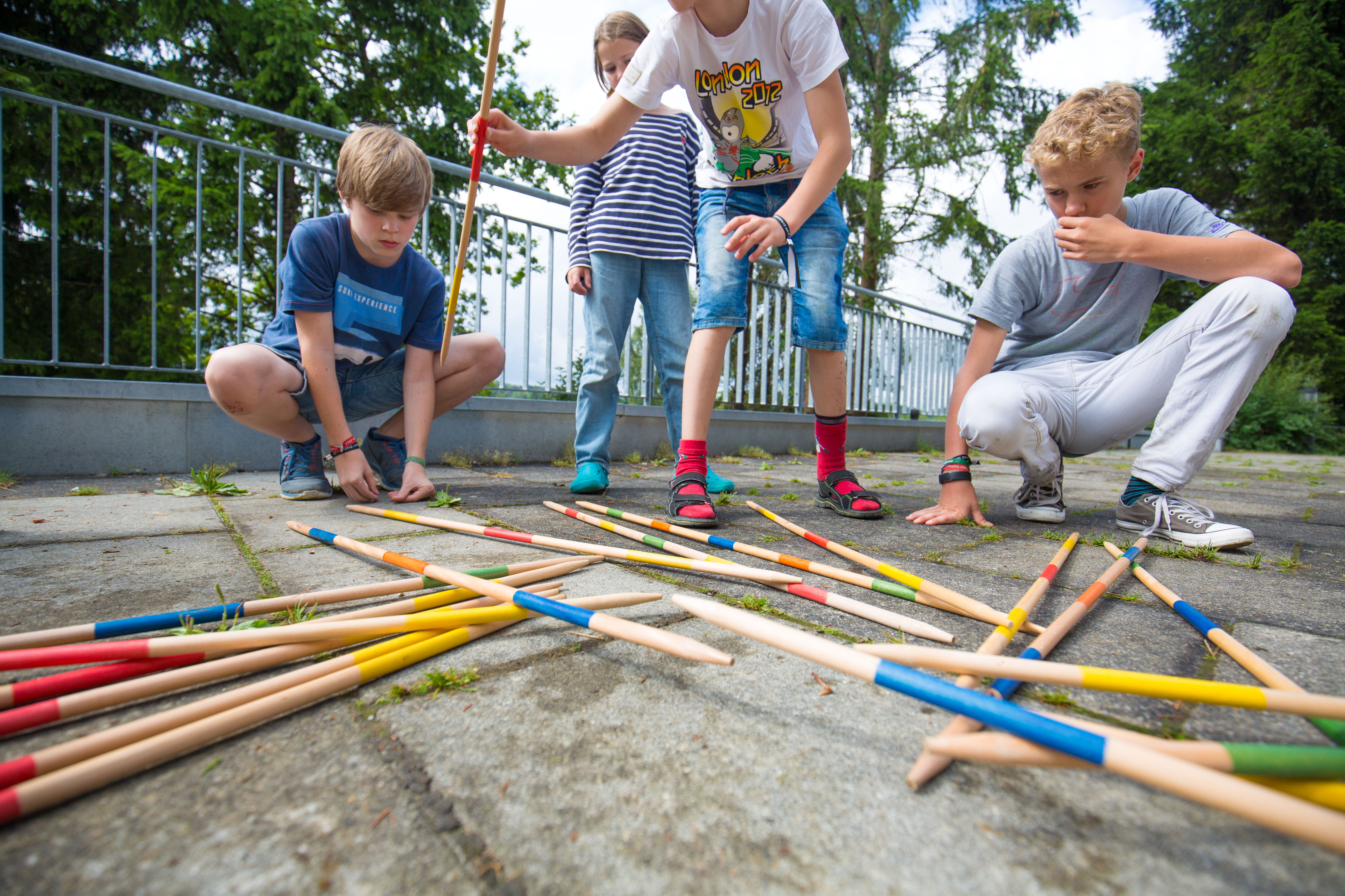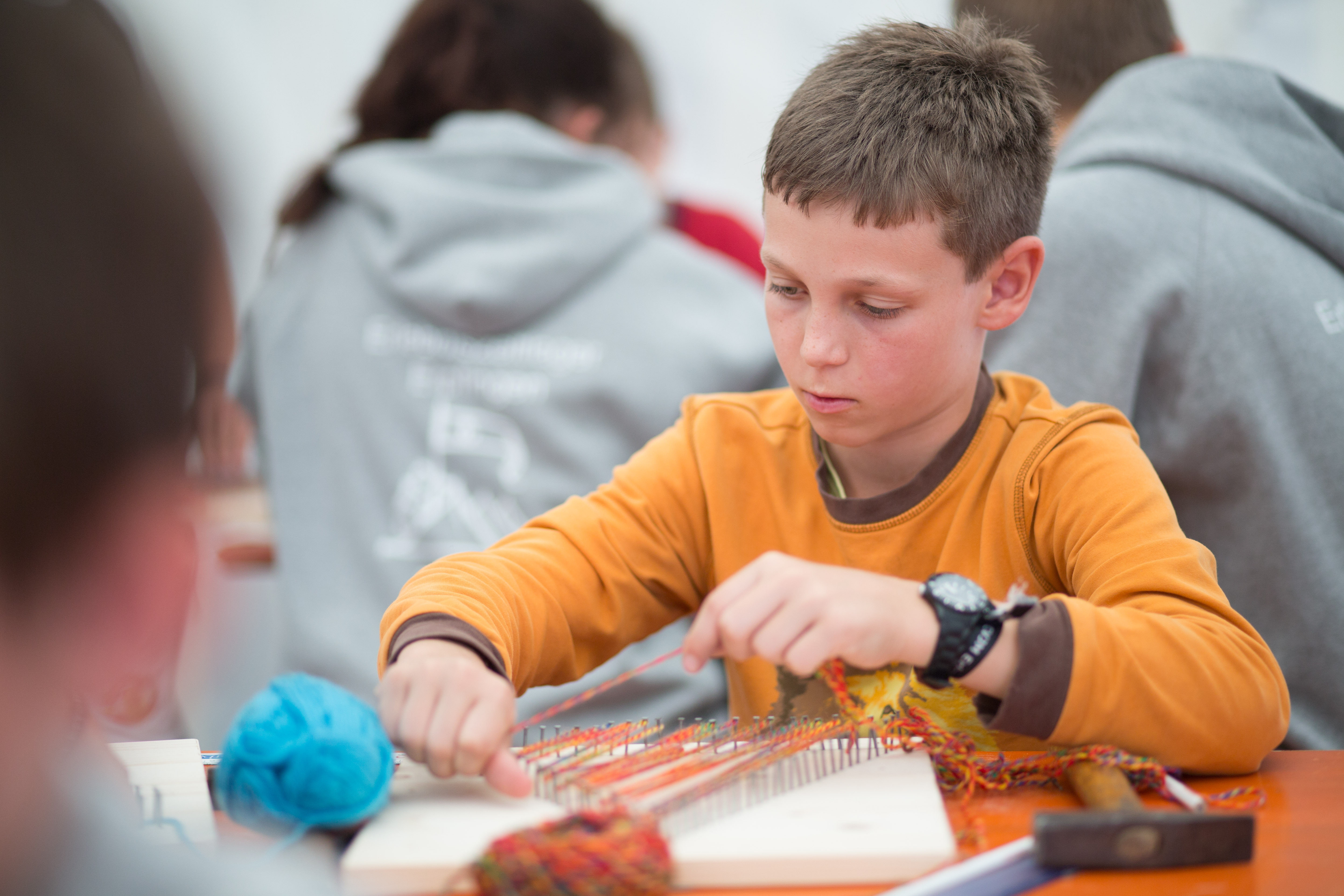 Das Regenwetter zwang uns, unser eigentliches Programm, das Geländespiel, zu verschieben. Zum Glück gibt es einige flexible Programmpunkte, die mit dem getauscht werden können. So fanden am Sonntag die kleinen Turniere statt, bei denen es eher um Geschicklichkeit als um Kraft geht. Wer keine Lust auf einen Wettkampf hatte, der konnte Taschen bemalen und bedrucken oder Nagelbilder hämmern.