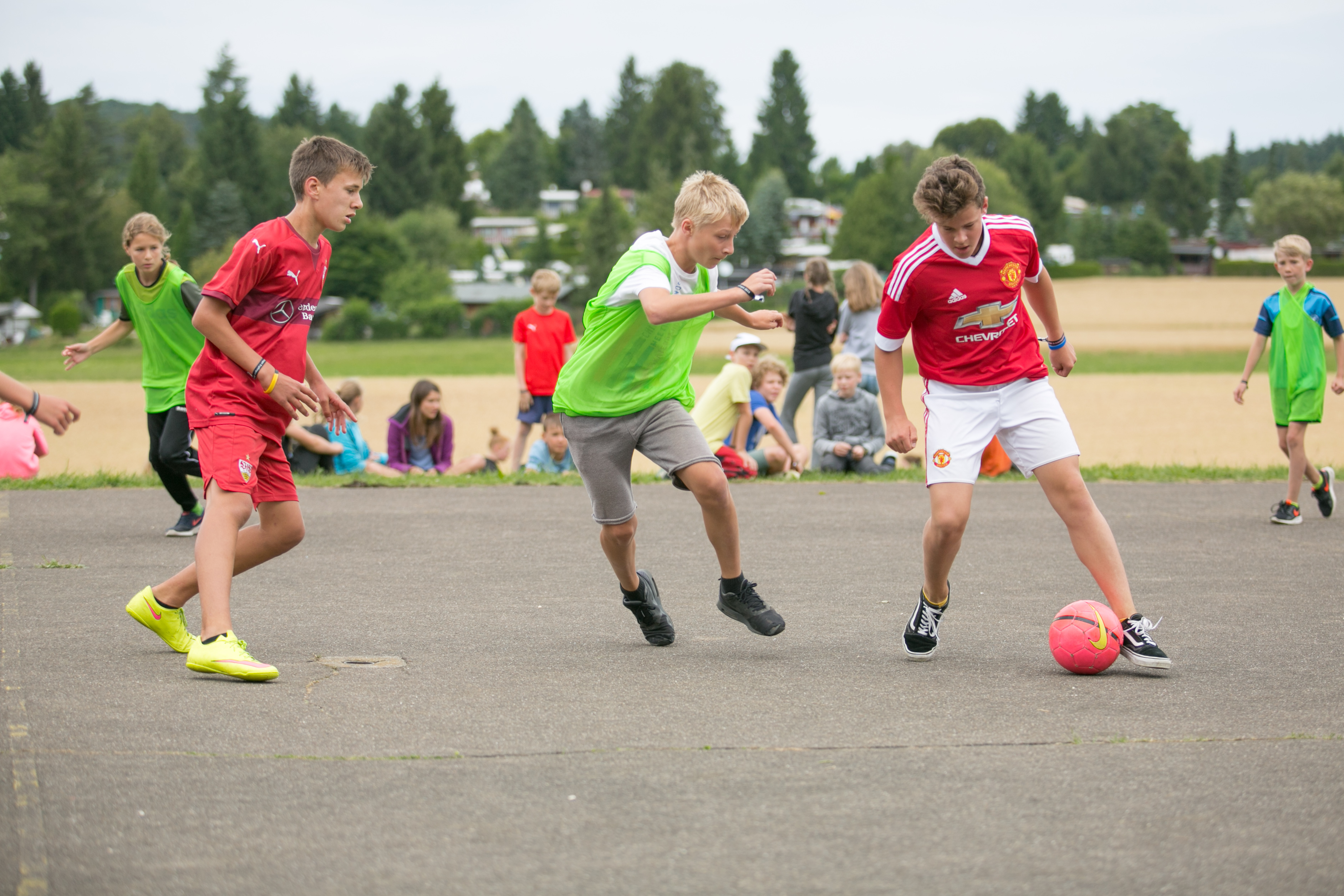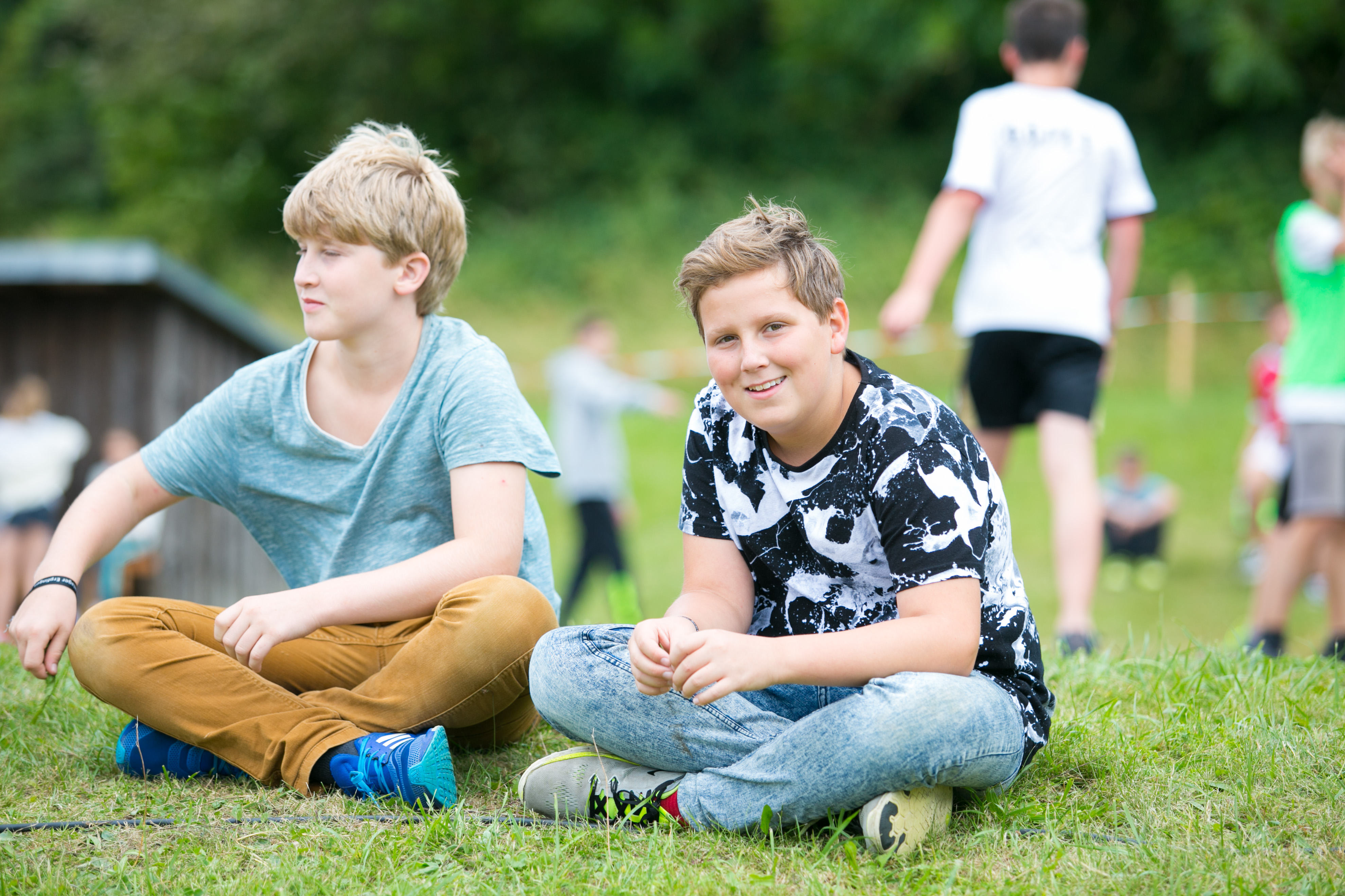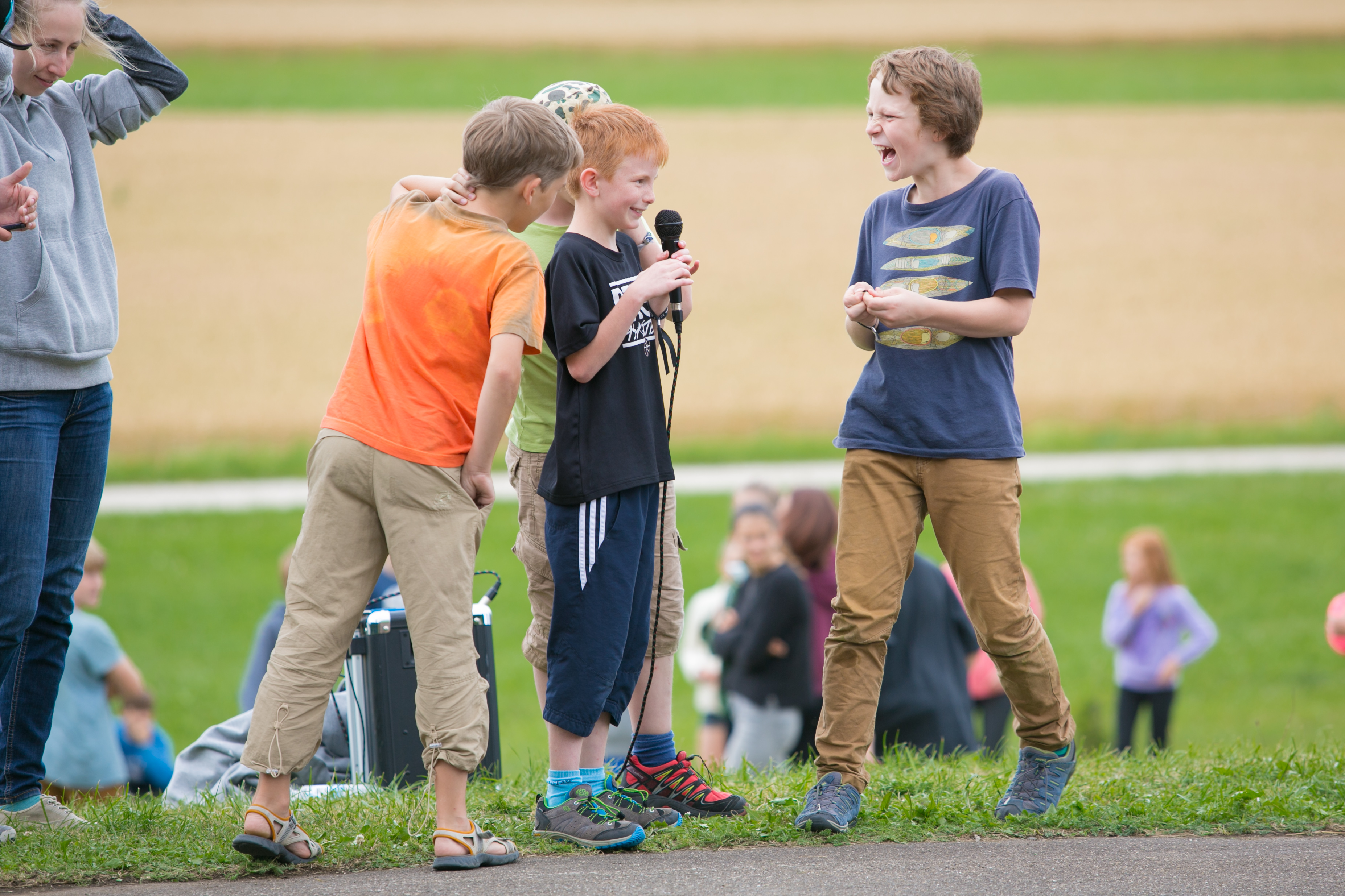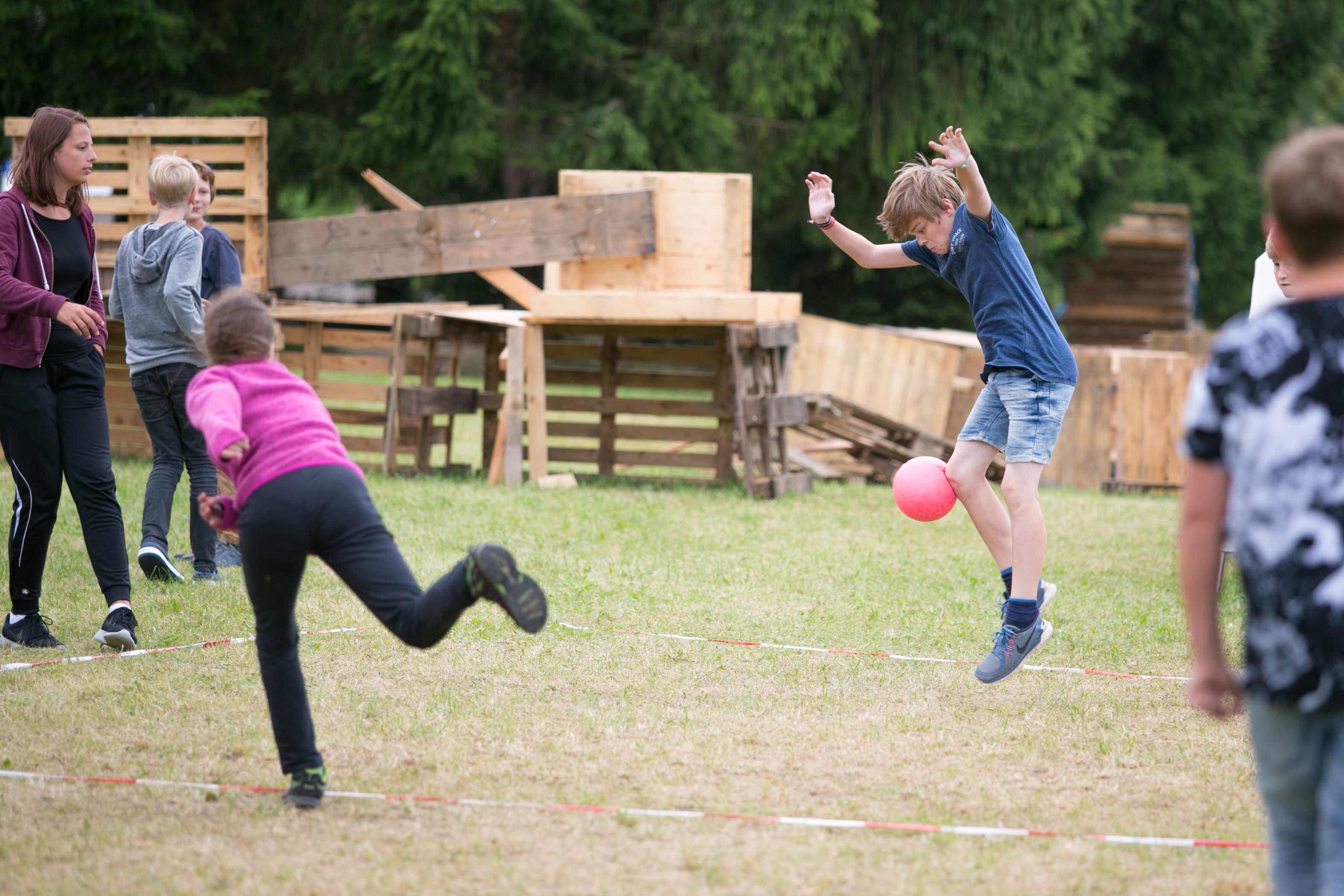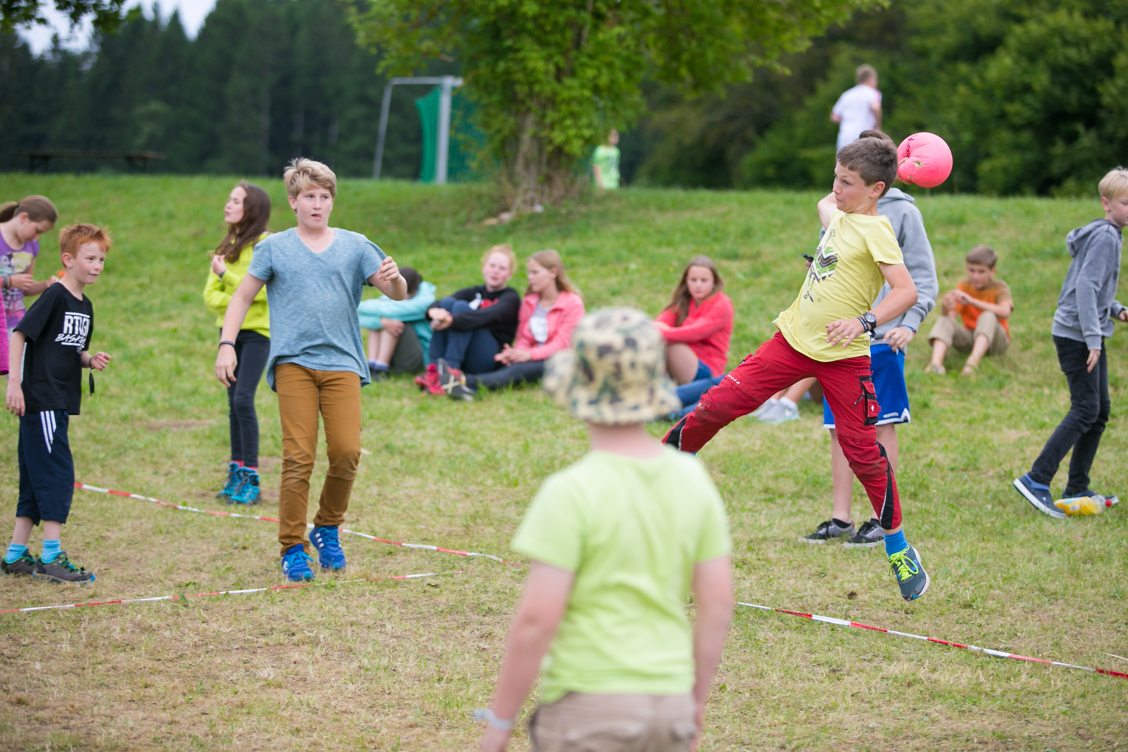 Sowohl Fußball wie auch Völkerball sind auf dem Zeltlager nicht wegzudenken. Natürlich stand auch dieses Jahr wieder ein großes Turnier für beide Spiele auf dem Programm. Mit Live-Kommentar und Musik war es auch am Spielfeldrand unterhaltsam. So machten es sich fast alle Kinder, die nicht auf dem Spielfeld standen, in nächster Nähe gemütlich.