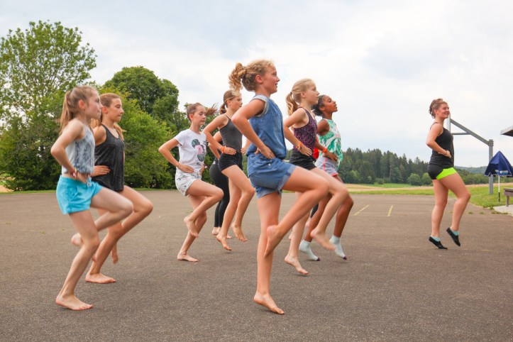 Geli und Jessica lehren die Tanzmariechen zum Garde-Gruppentanz. Die Workshop Leiterinnen waren schon als Kinder am Gardetanz interessiert.
