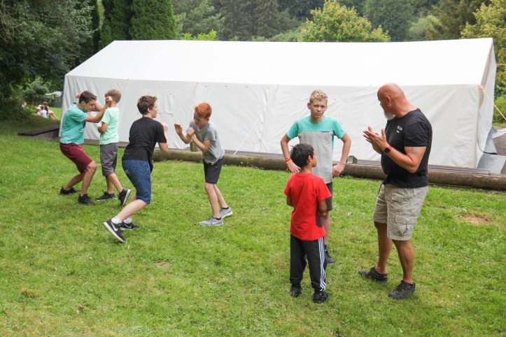 Außerdem gab es die Workshops Kajakfahren, Selbstverteidigung und Bäcker. Von diesen Workshops haben wir leider keine Interviews. Doch sie haben Bretzeln in der Bäckerei Haug gebacken, sind Kajak gefahren und haben gelernt sich selbst zu verteidigen.