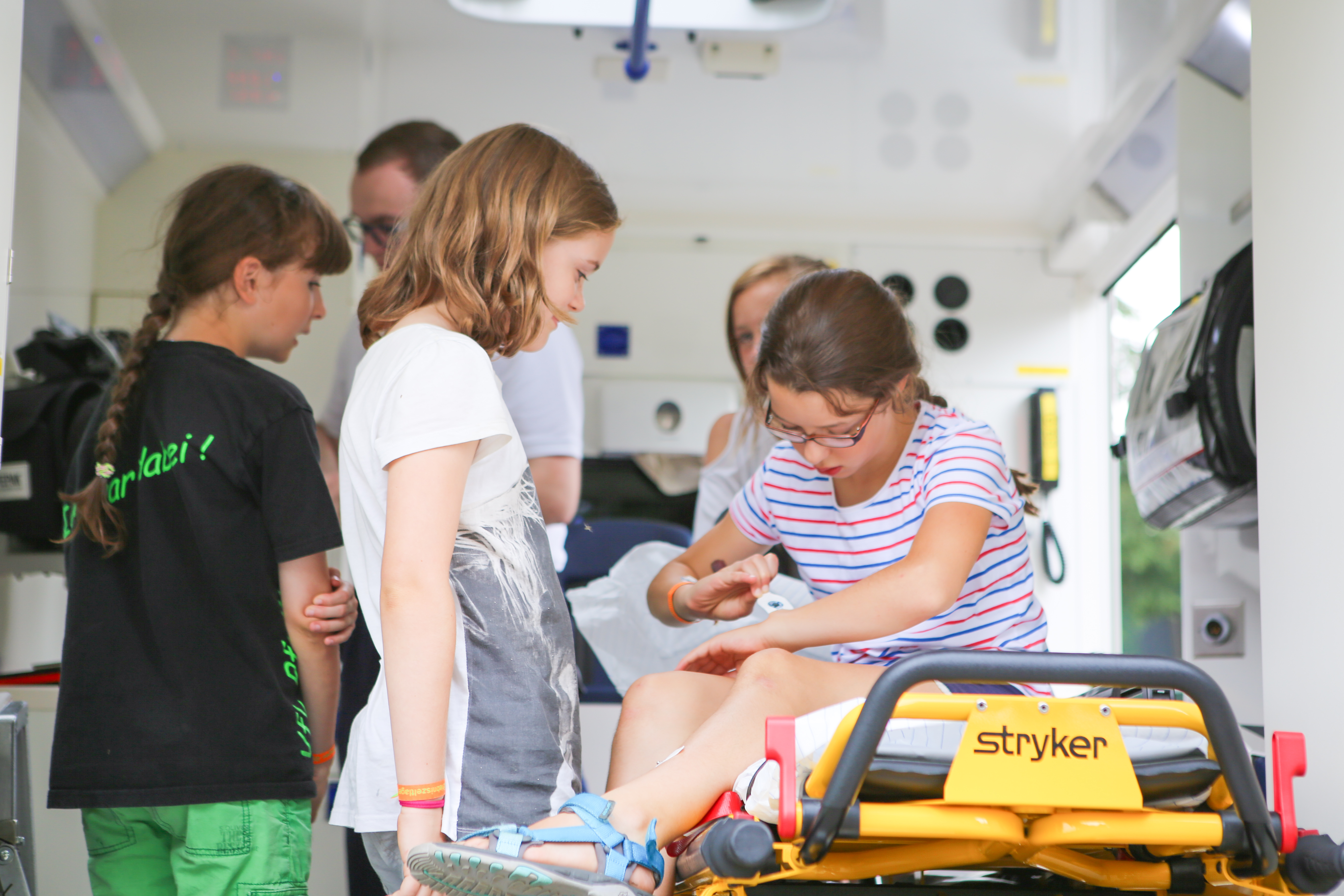 Arthur und Julian zeigten den Kindern den Rettungswagen und ihre Arbeit. Die Teilnehmer finden diesen Beruf spannend, doch es ist ihnen noch zu gruselig. Auf jeden Fall sind sie vorbereitet, wenn jemand verletzt ist.