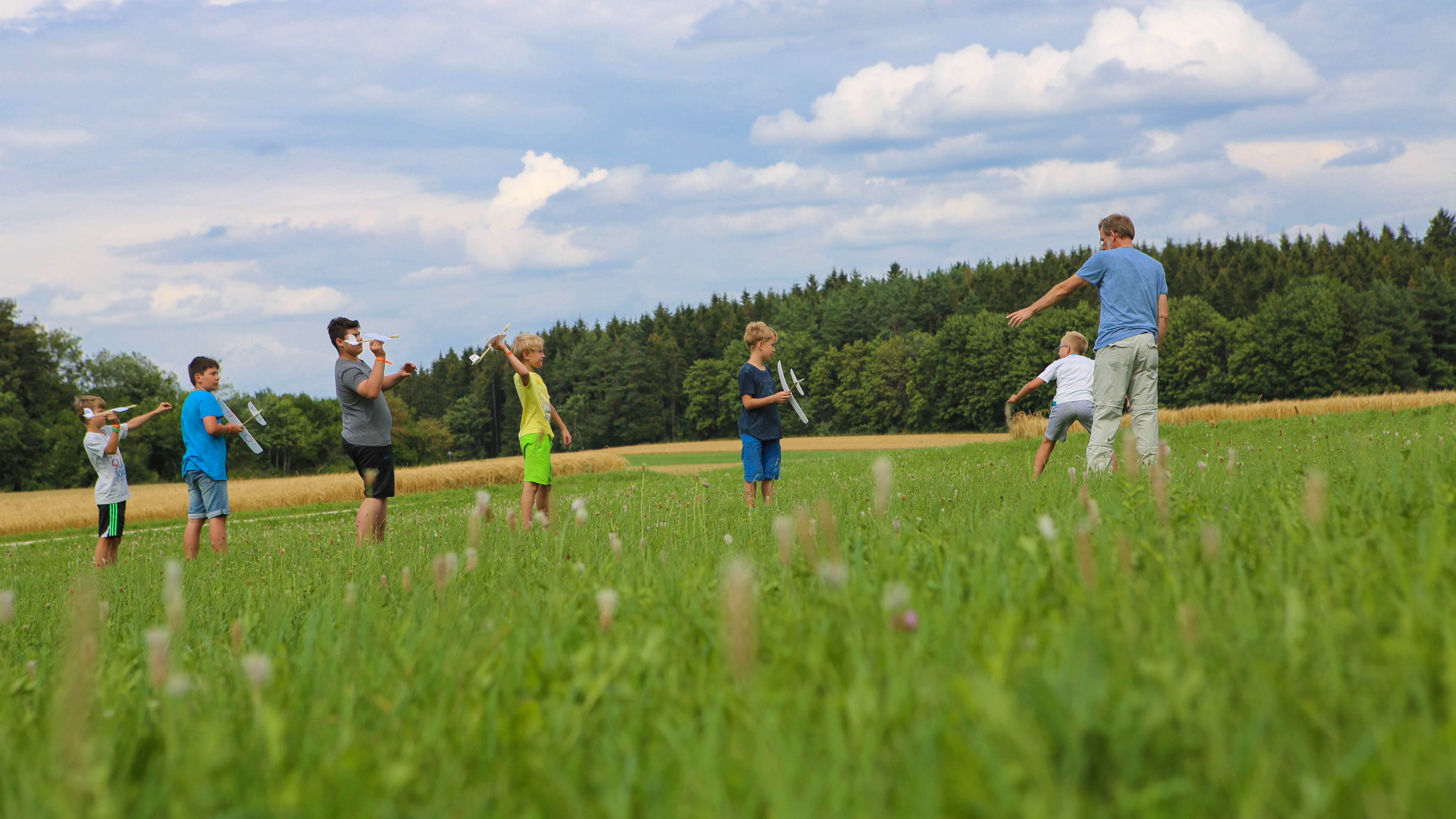 Klaus, der extra für den Workshop kam, brachte such das Material mit, welches man dafür braucht. Wie z.B. Kieferleisten, Kleber und dünnes Styropor für die Flügel. Einen Modellflieger zu fliegen ist nicht ganz einfach, aber Übung macht den Meister.