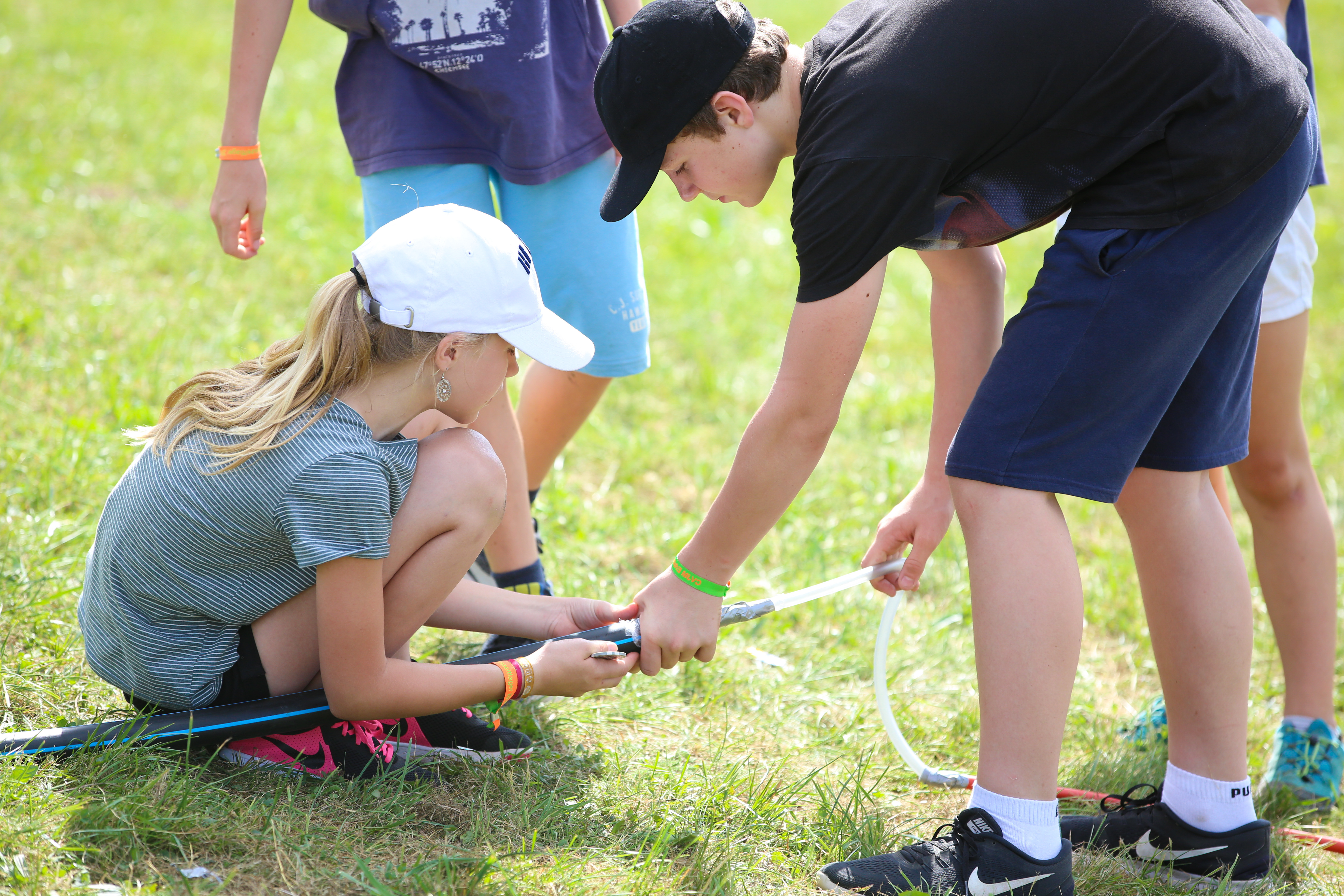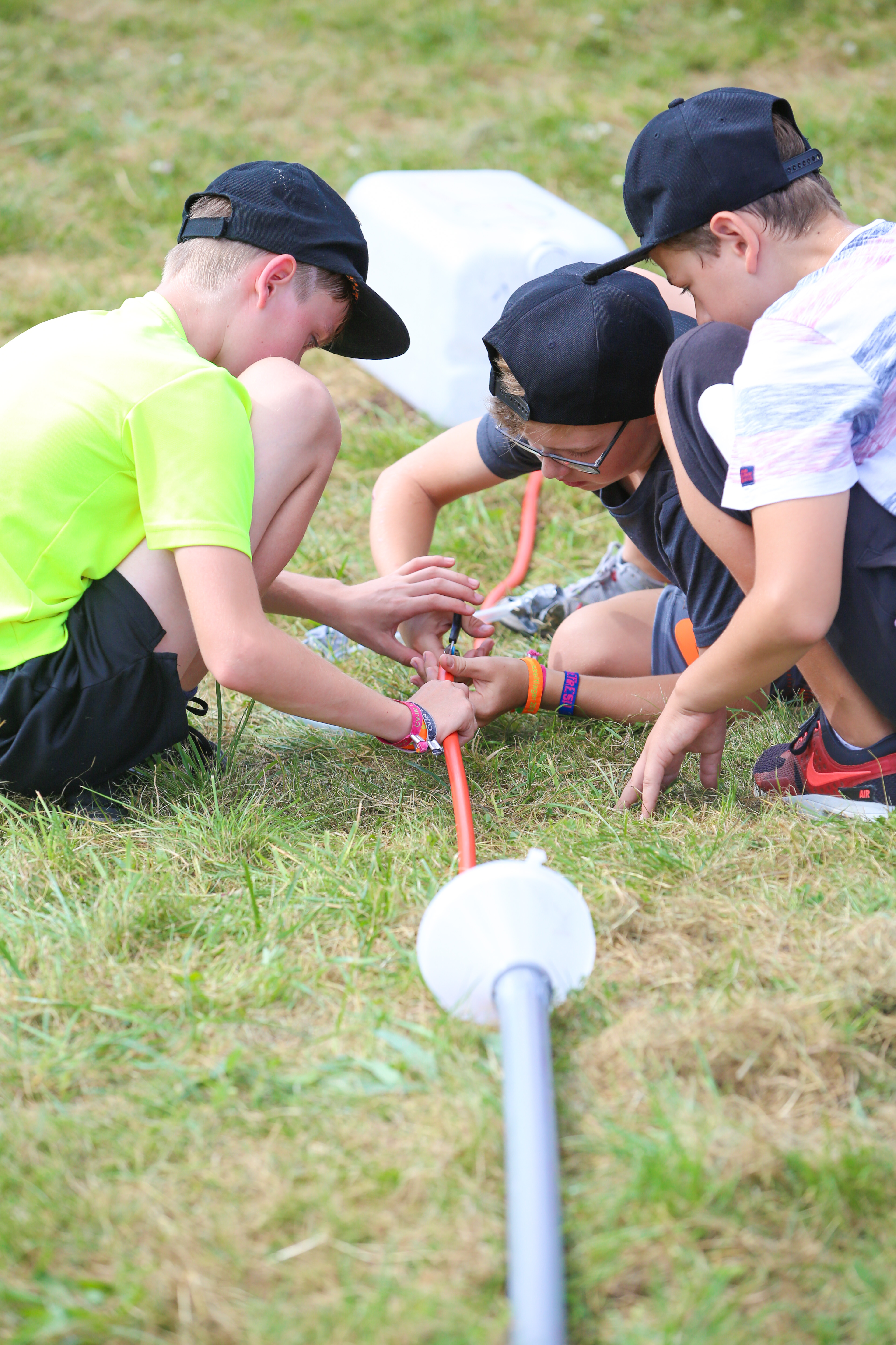 Im finalen Teil musste das erspielte Wasser über eine selbst konstruierte Leitung in Messbecher abgefüllt werden. Dabei stellte sich die eine Konstruktion zuverlässiger heraus als die andere, was schlussendlich auch den Unterschied im Wettbewerb um den 1. Platz ausmachte.