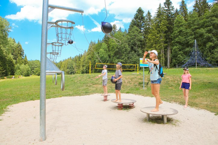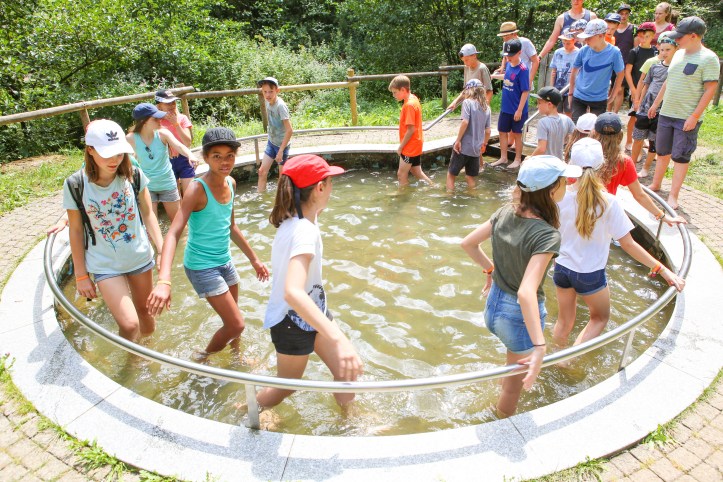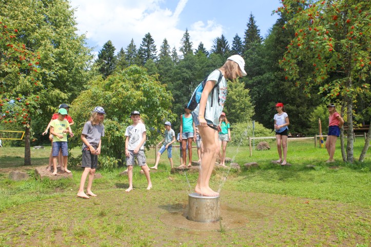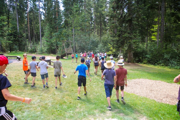 Die Tour durch den abwechslungsreich gestalteten Park wurde durch zwei Führer angeleitet, die den Kindern genug Zeit zum Verweilen und Ausprobieren gaben. Für das leibliche Wohl sorgte das mobile Küchenteam. Neben Vesper gab es Obst, Saft, Kekse und andere Leckereien.