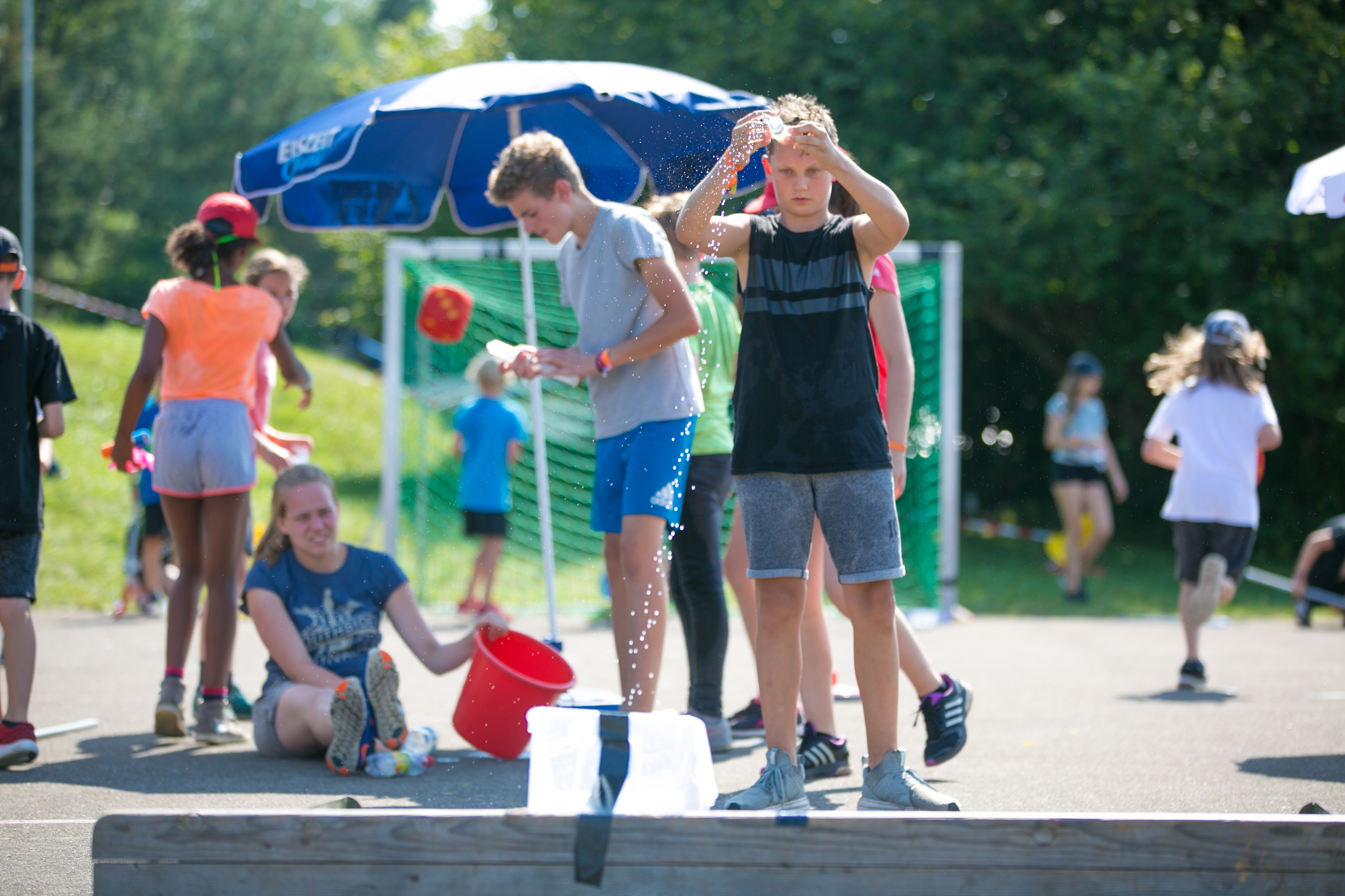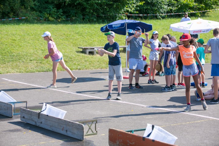 Nachmittags fand der zweite Teil des Planspiels statt. Kinder, die sich sportlich mit den Mitarbeitern messen wollten, konnten dies beim Schmuggeln von Wasser tun. Wer sich eher als geschickt und präzise beweisen wollte, der konnte das erbeutete Wasser dann mit Spritzen ans Ziel befördern.
