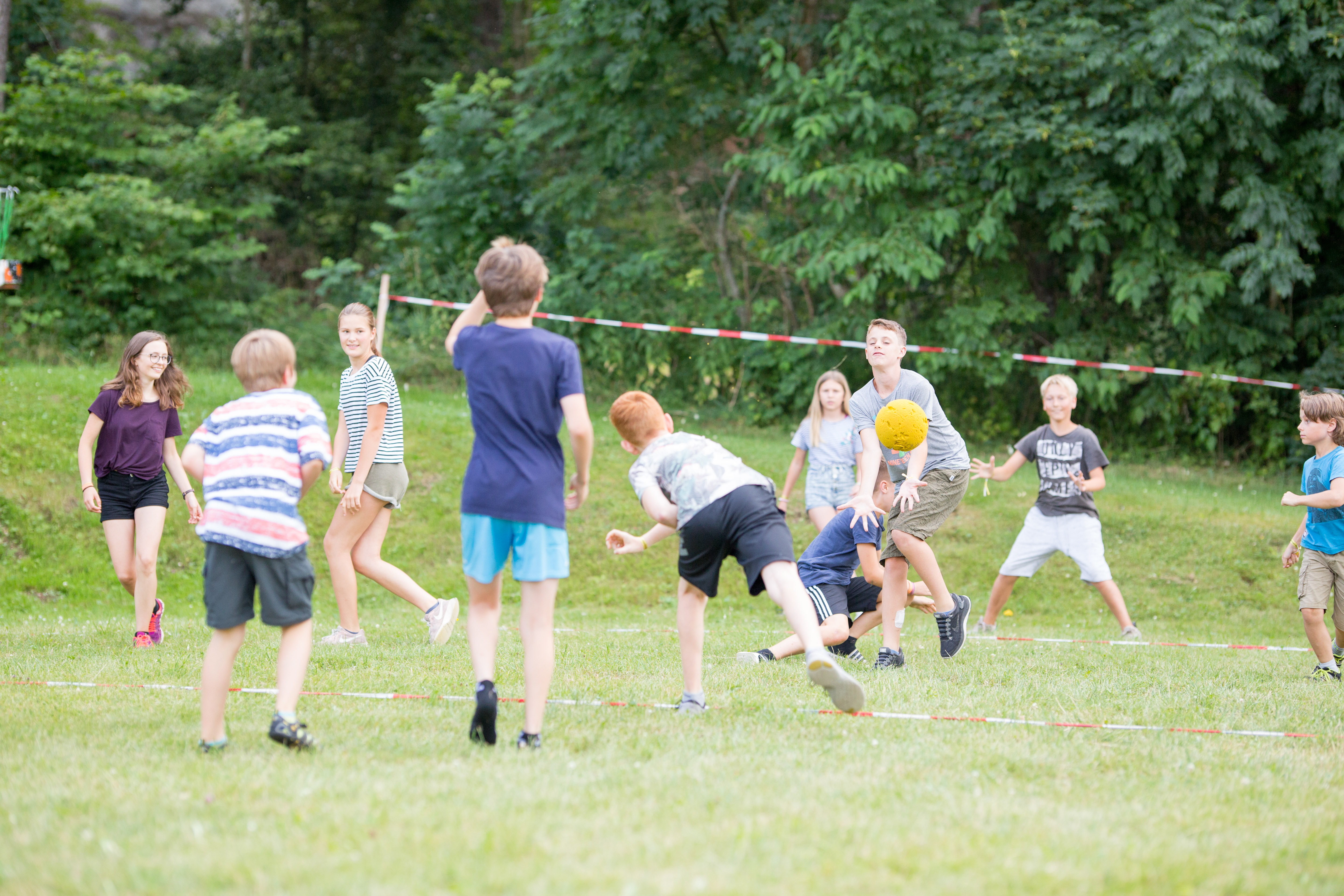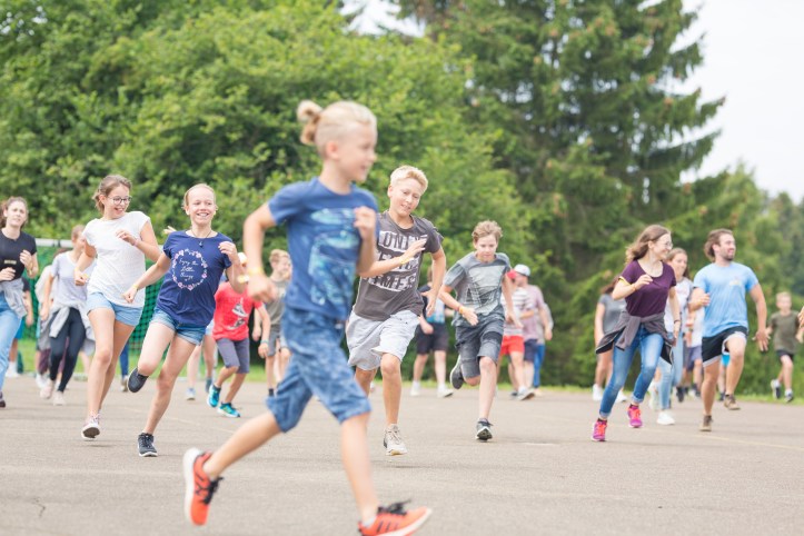 Nach den obligatorischen Begrüßungsspielen und der Zelteinteilung ging es rasch zum Mittagessen. Spaghetti mit Tomatensoße machten nicht nur satt, sondern hinterließen auch vorhersehbare Spuren in vielen Gesichtern. Mund abgewischt und weiter geht’s mit den Kennenlernspielen, die die Zeltgruppen enger zusammenbrachten. Danach gab es genug freie Zeit zum Kicken, Bauen, Basteln, Werfen, Rennen usw. Leider regnete es sich vor dem Abendessen ein, weswegen die angedachte Nachtwanderung zum trockeneren Zeltgruppenabend wurde.