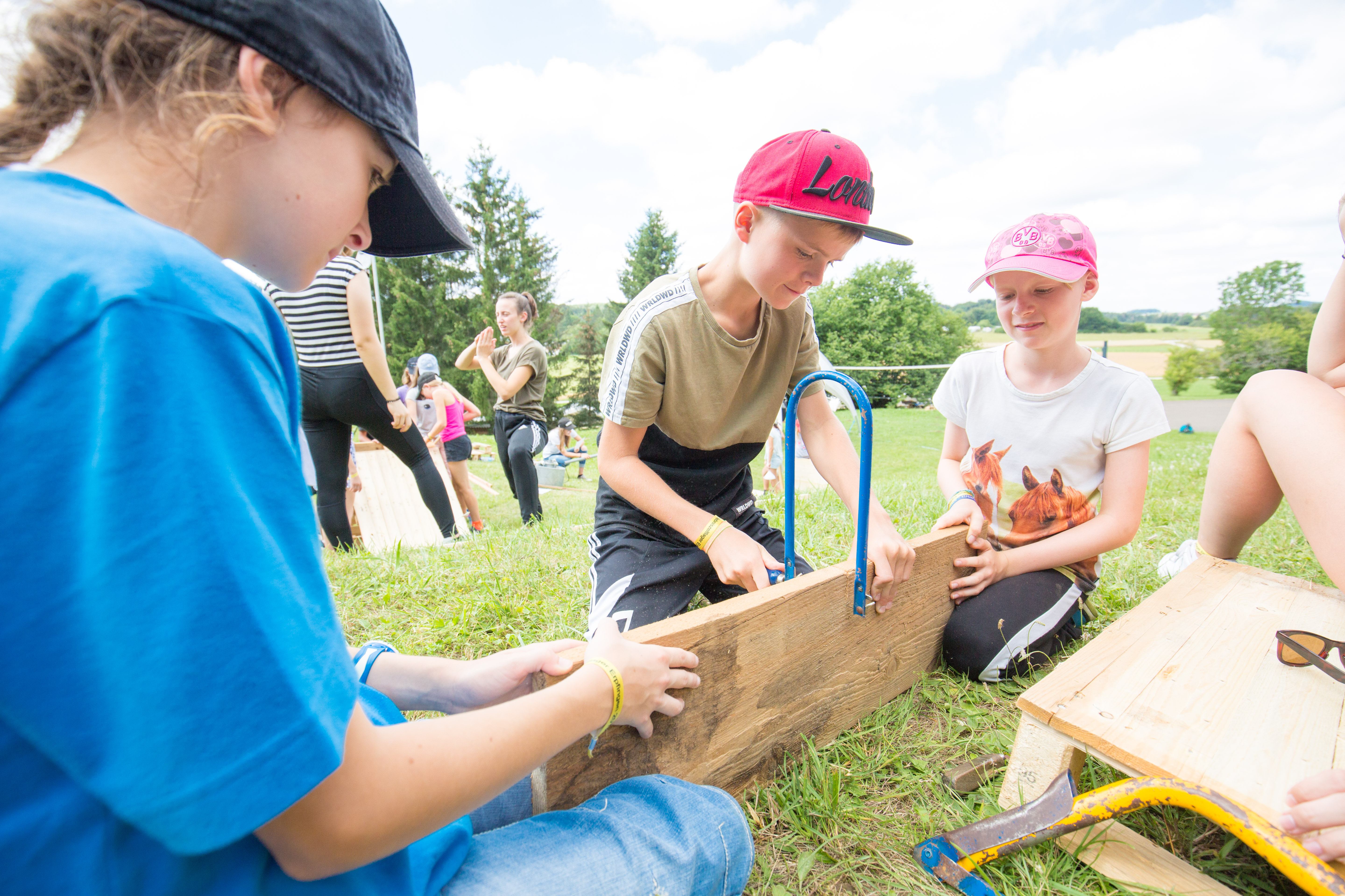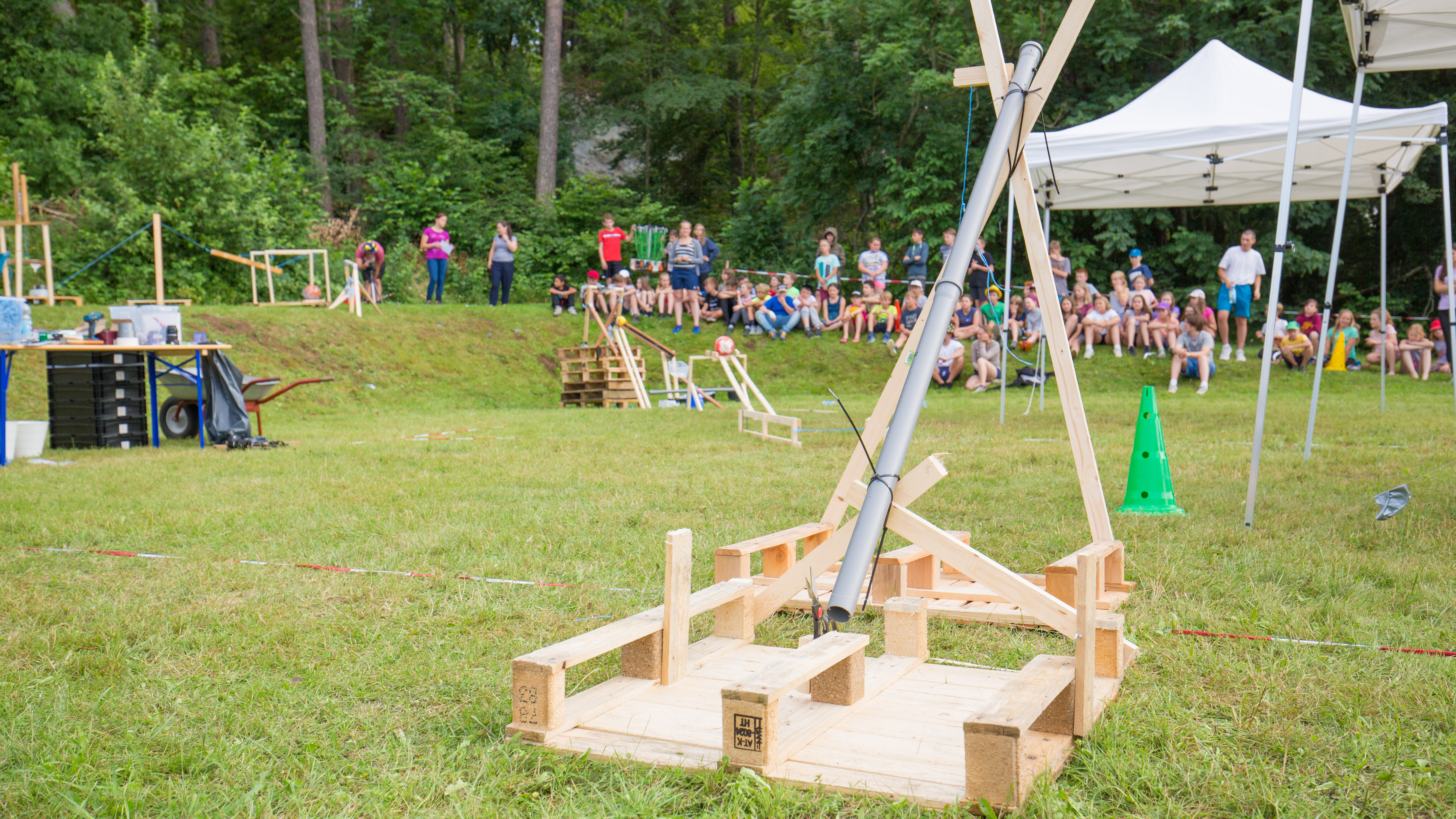 Gemeinsam „schafft“ man mehr. Genau deshalb wurde der Programmpunkt des „Cool Bauings“ verändert. In 13 bunt zusammengewürfelten Gruppen wurden 13 verschiedene kleine Stationen der zusammenhängenden Crazy Machine gebaut. Am einen Ende wurde Wasser in die Maschine gefüllt, welches eine lange Kettenreaktion auslöste an deren Ende die Lagerglocke geläutet wurde.