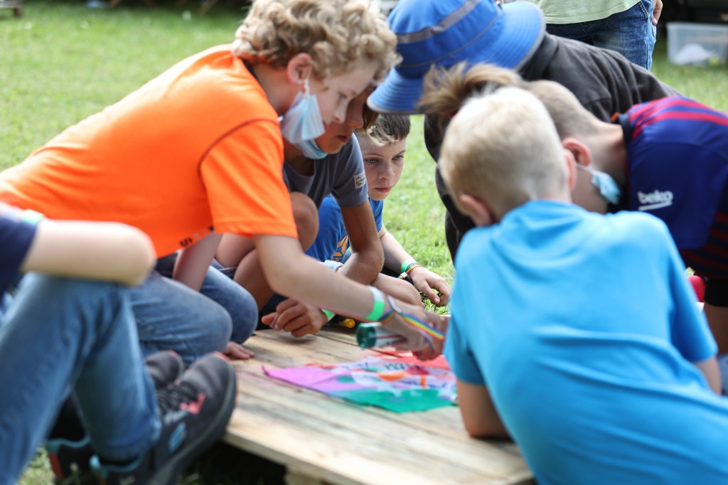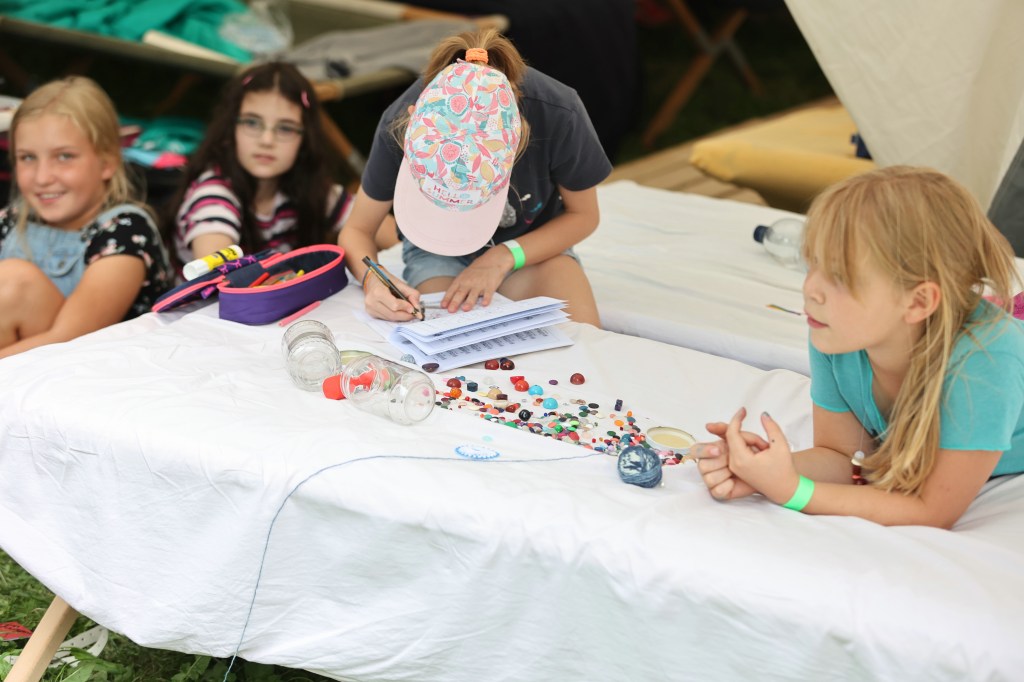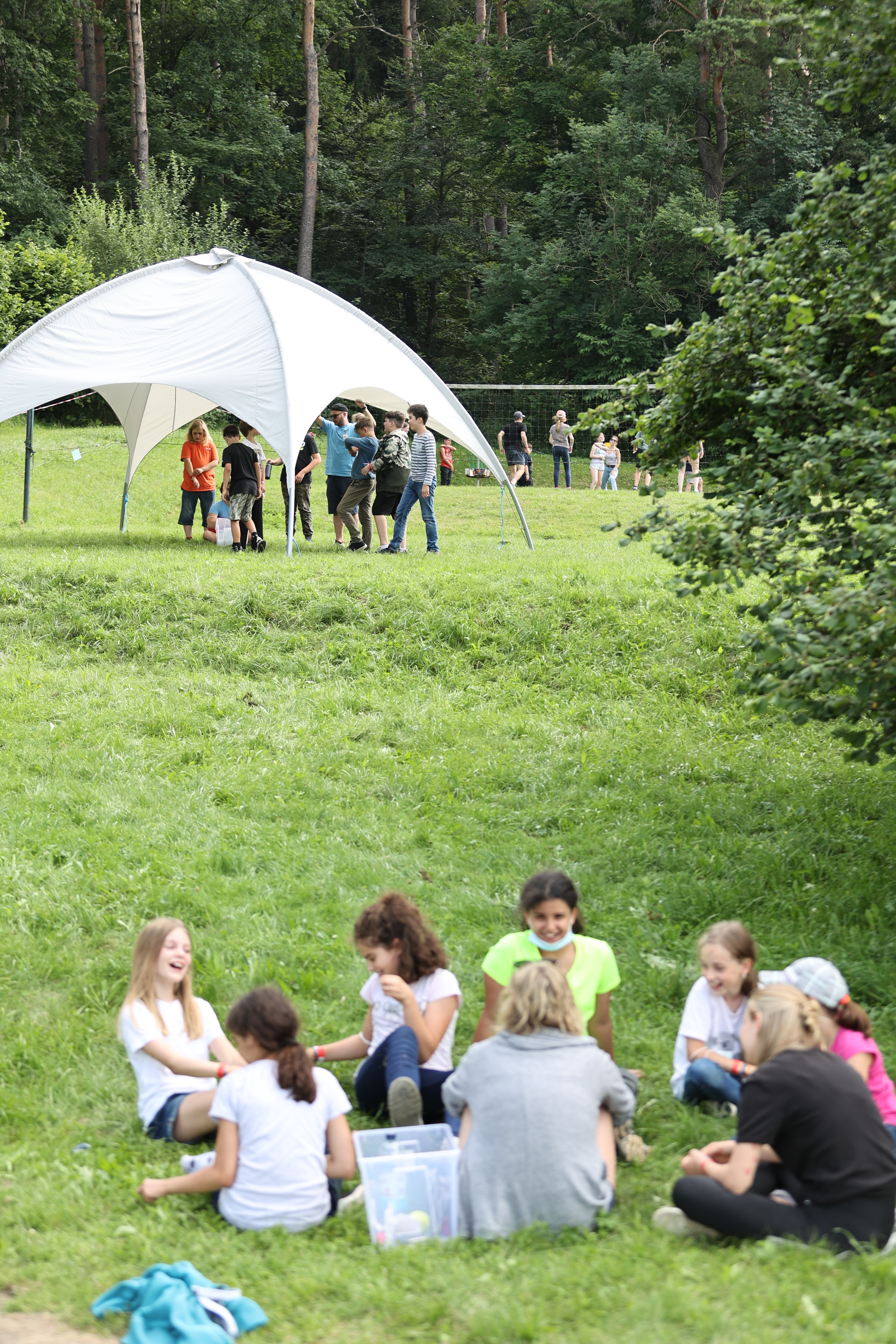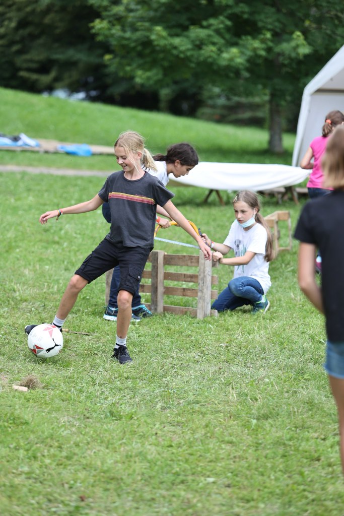 Für viele Kinder ist dieses Zeltlager ihr erstes, weswegen die erkundenden Spaziergänge über den Zeltplatz länger ausfielen als sonst. Trotzdem kam schnell die gesellig-geschäftige Atmosphäre auf, die auch ein kurzer Regenschauer nicht ausbremsen konnte.