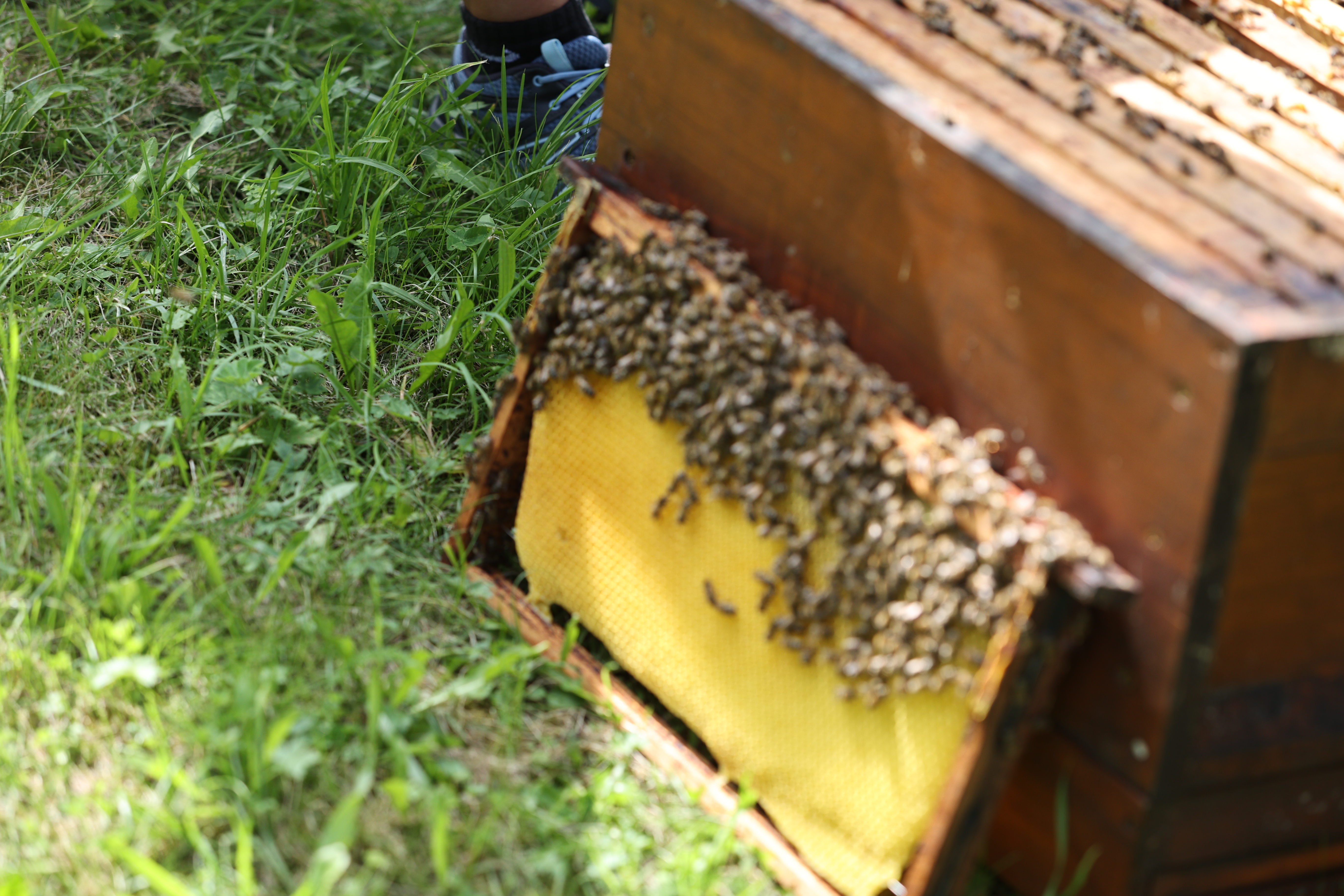 Die Bienen des Imkers waren sehr ruhig und friedlich. Die Kinder konnten die Geburt einer Biene miterleben und lernten außerdem noch informative Fakten über Bienen.
