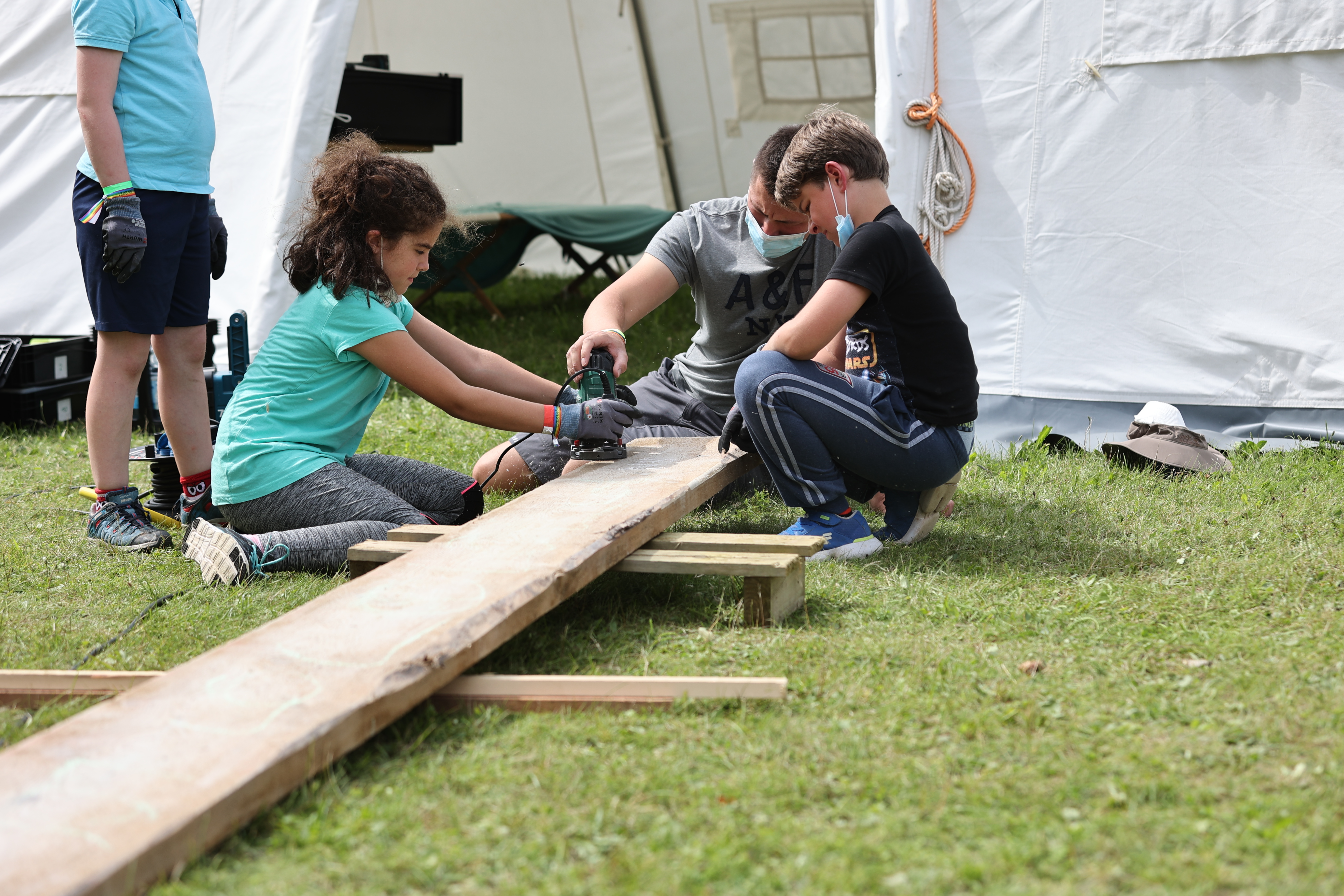 Beim Palettenwunder wurde statt mit Hammer und Nägeln mit Bohrmaschine und Oberfräße gearbeitet.