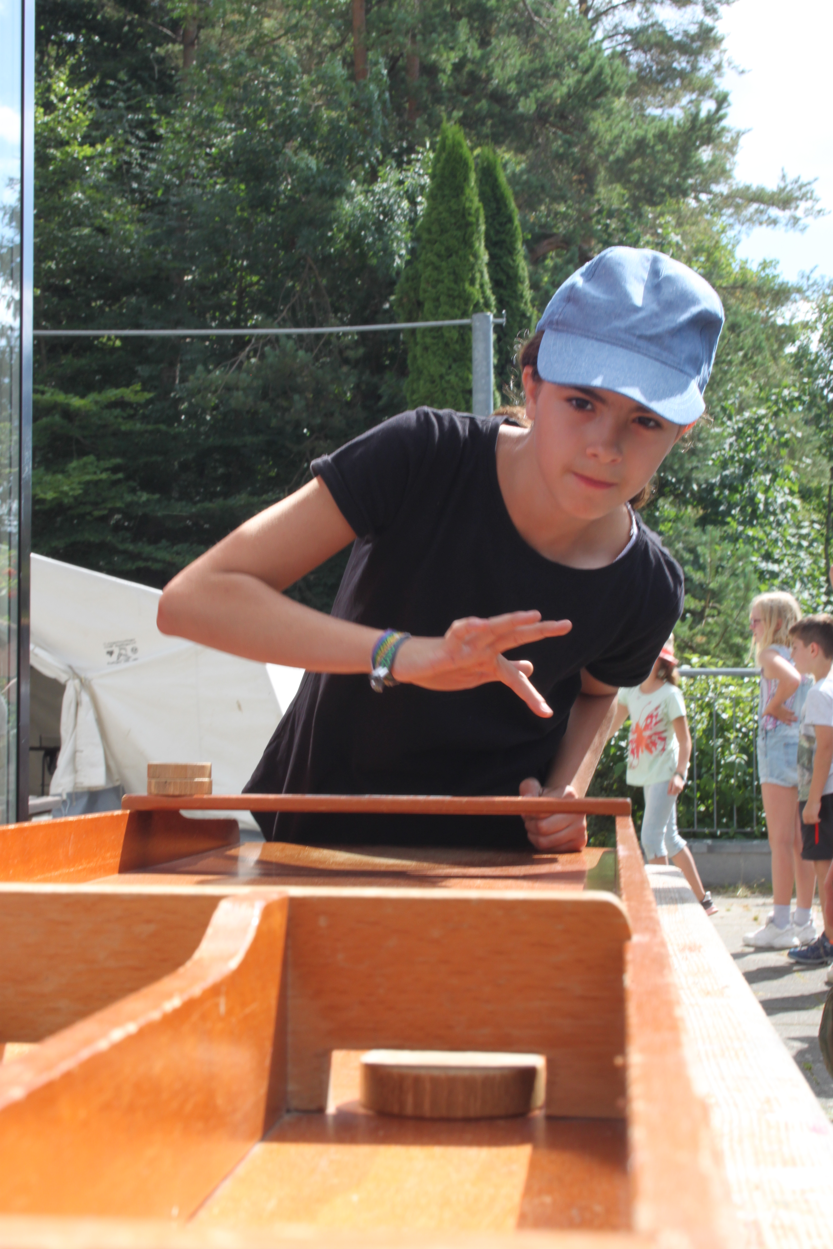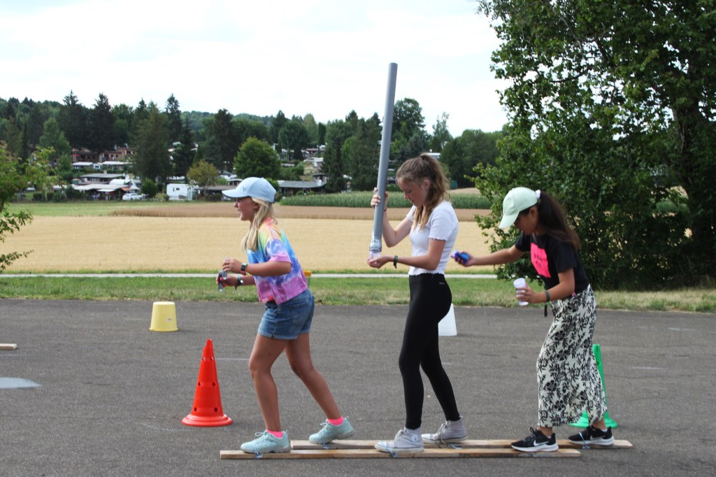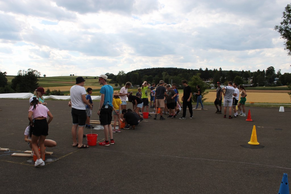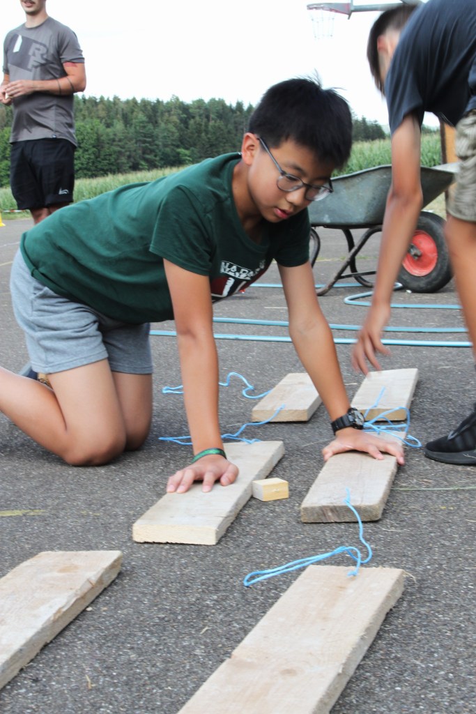 Bei verschiedenen Minnispielen konnte jede der 7 Gruppen „Coins“ verdienen. Diese „Coins“ konnten im Zeltlager-Baumarkt in Baumaterial umgetauscht werden, mit dem dann Sommerski für jeweils drei Personen gebaut wurden.