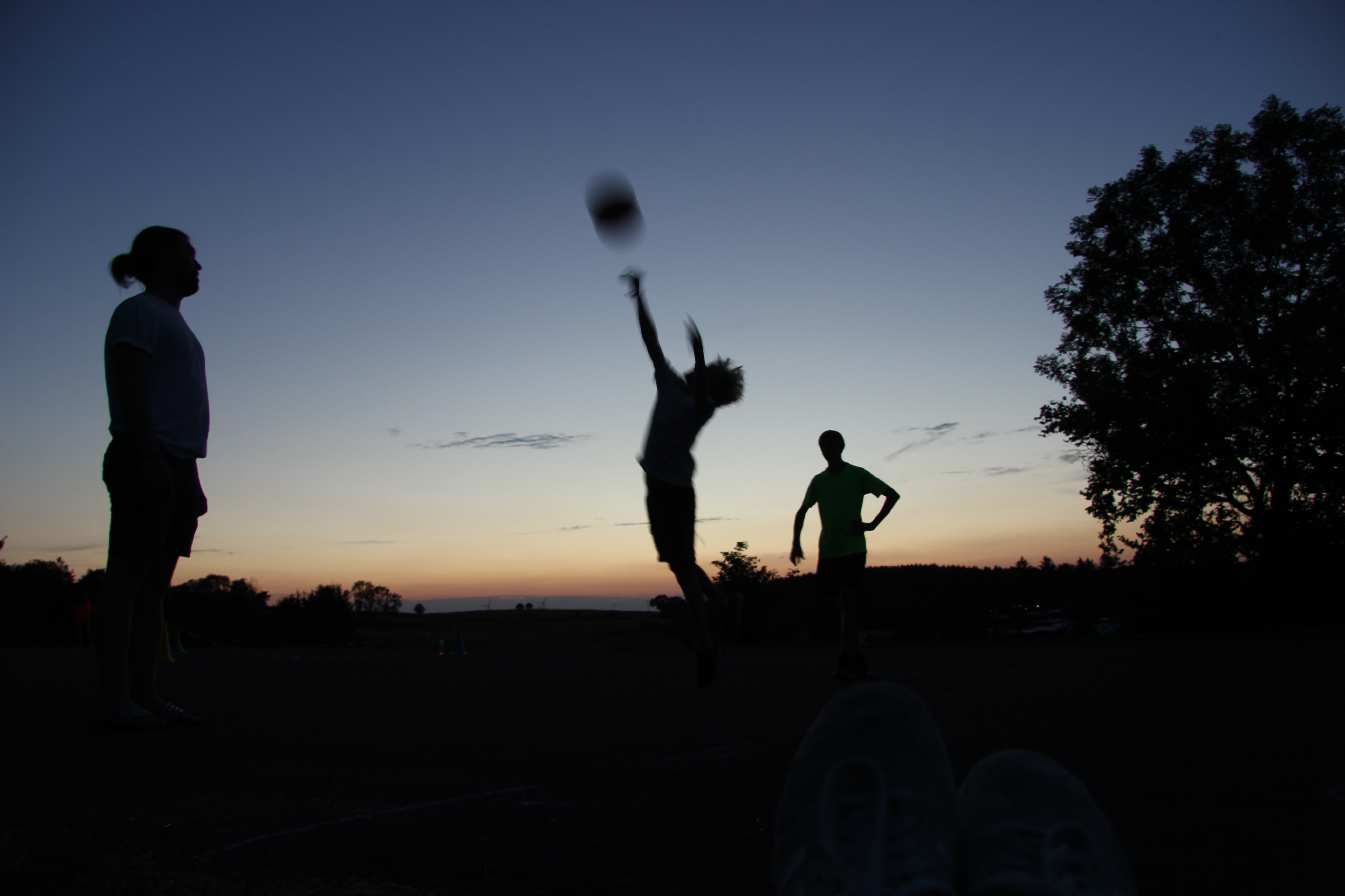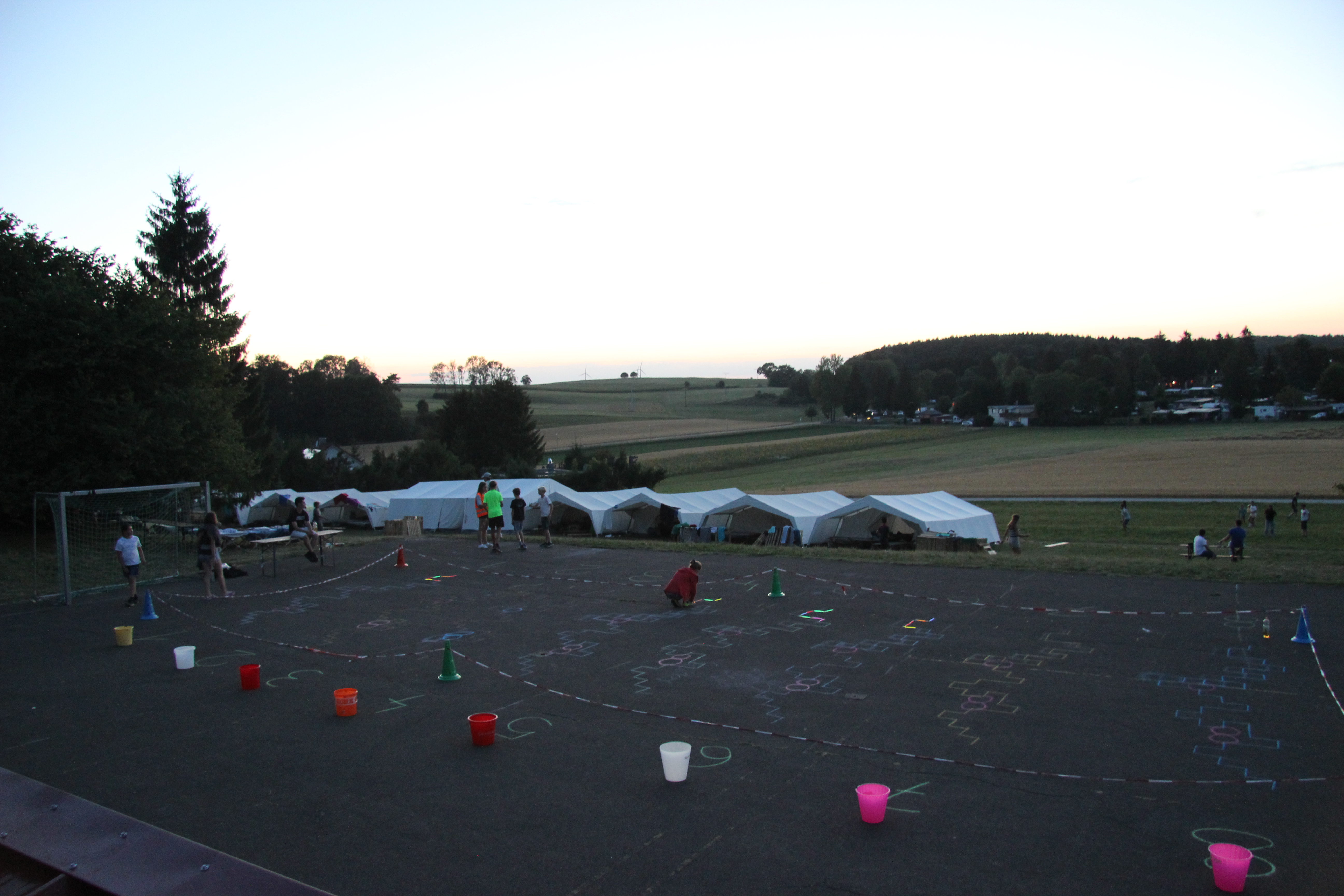 Nach einem entspannten Nachmittag und leckeren Hotdogs zum Abendessen stand das Nachgeländespiel auf der Tagesordnung. Dabei mussten die Kinder bei verschiedenen Minispiele Märkchen verdienen, die in leuchtende Wegteile für ein Labyrinth umgetauscht werden konnten. Mit der hereinbrechenden Dunkelheit erleuchteten die Knicklichter das Gelände und die Herzen der Kinder.