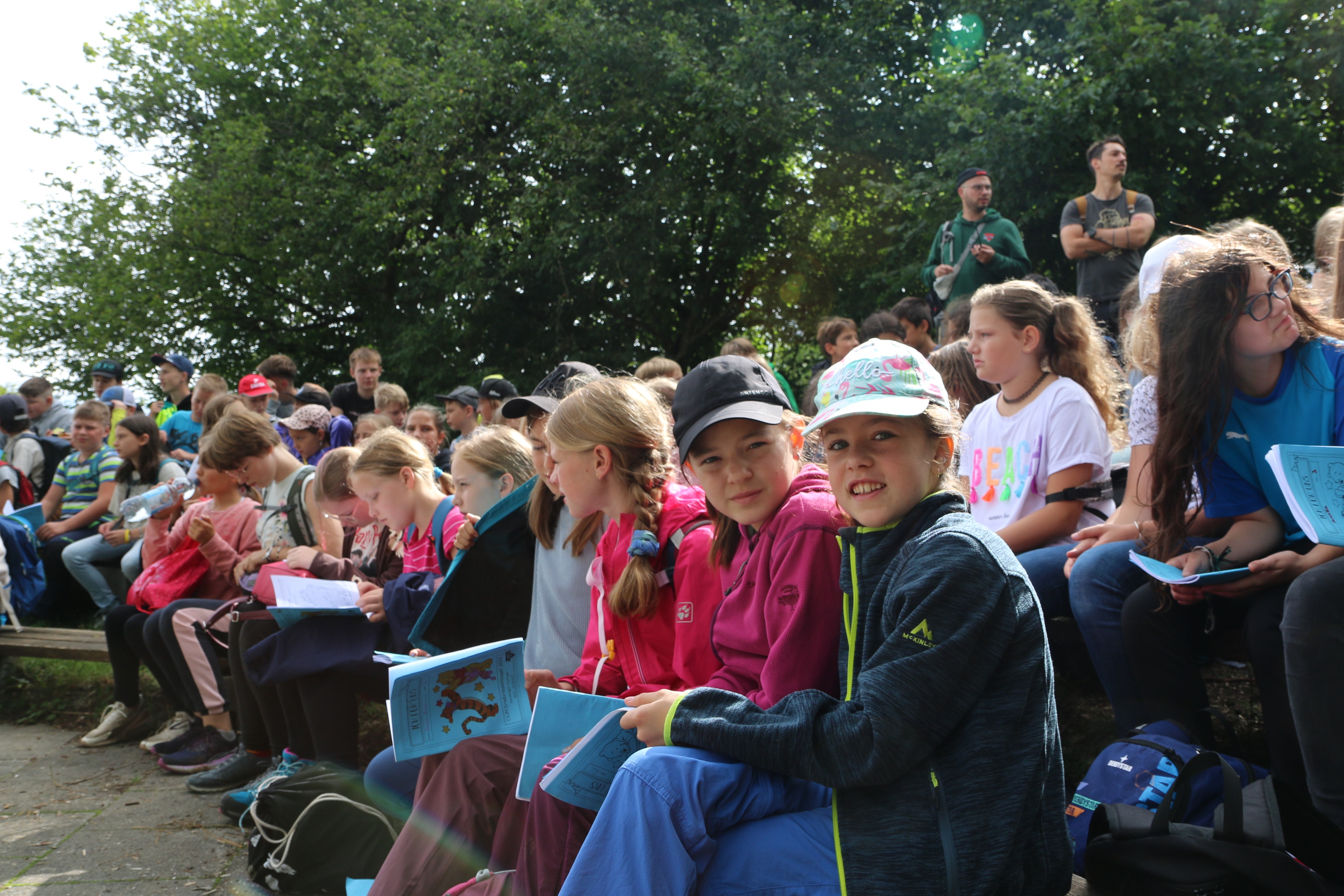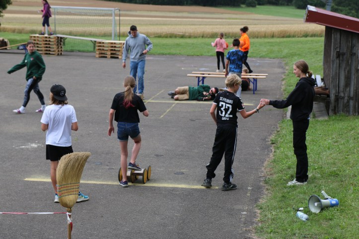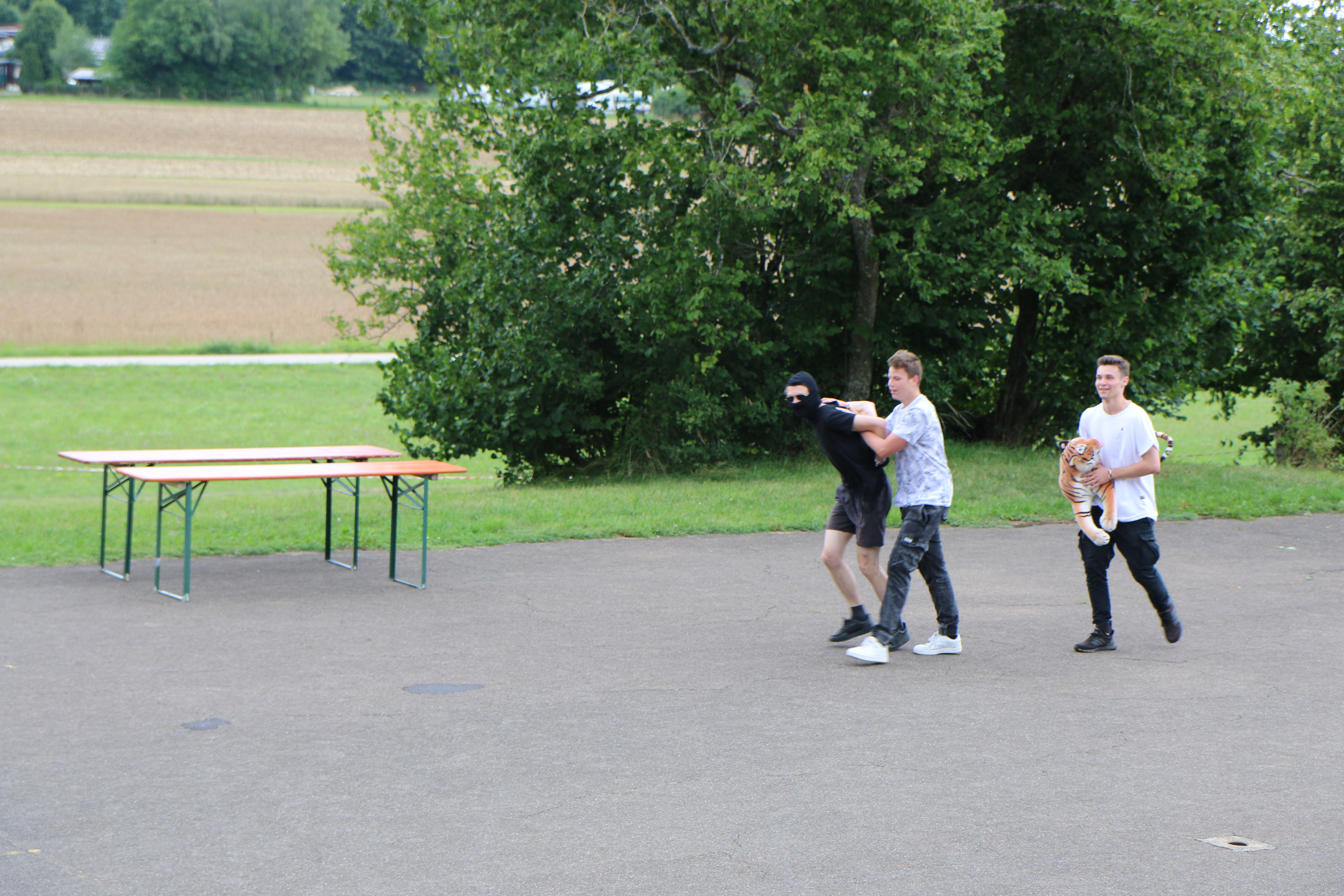 Heute wurde den Teilnehmenden ein neuer Gast des Zeltlagers vorgestellt: Herbert der Tiger. Nach einem leckeren Frühstück (mit extra Sonntagsnutella) wurde an der Feuerstelle gesungen. Plötzlich brach in den Reihen pure Panik aus, denn Herbert war verschwunden! Der zurückgelassene Erpresserbrief gab Aufschluss darüber was mit ihm geschehen war. So mussten sie am Vormittag duch verschiedene Stationenspiele die Teile einer Schatzkarte erspielen. Nach einer ausgiebigen Stärkung ging es am Nachmittag darum die Zutaten für den Zaubertrank durch verschiedene Hindernisse und klauende Halunkenbanden zu tragen. Der Zaubertrank galt schlussendlich als Erlös für den Tiger. Alle Kinder waren glücklich als Herbert wieder wohlauf zurück war und der Entführer hinter Gittern saß.