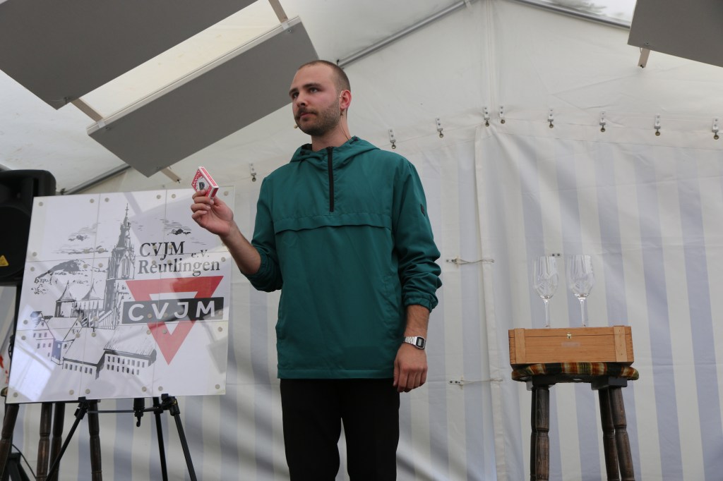 Anschließend füllten die Kinder ihre Zeit mit Völkerball, Discgolf und Tischtennis. Vor allem aber versuchten sie aus den Betreuer*innen herauszupressen, was denn die angekündigte Überraschung heute Nachmittag sei. Doch die Mitarbeiter*innen blieben standhaft und so war die Freude groß, als das Geheimnis gelüftet wurde und die Kinder eine Show des Zauberkünstlers Nikolai Striebels genießen konnten. Aber nicht nur die Kinder bekamen ihren Mund vor lauter Staunen nicht zu, auch die Erwachsenen waren mehr als Baff.