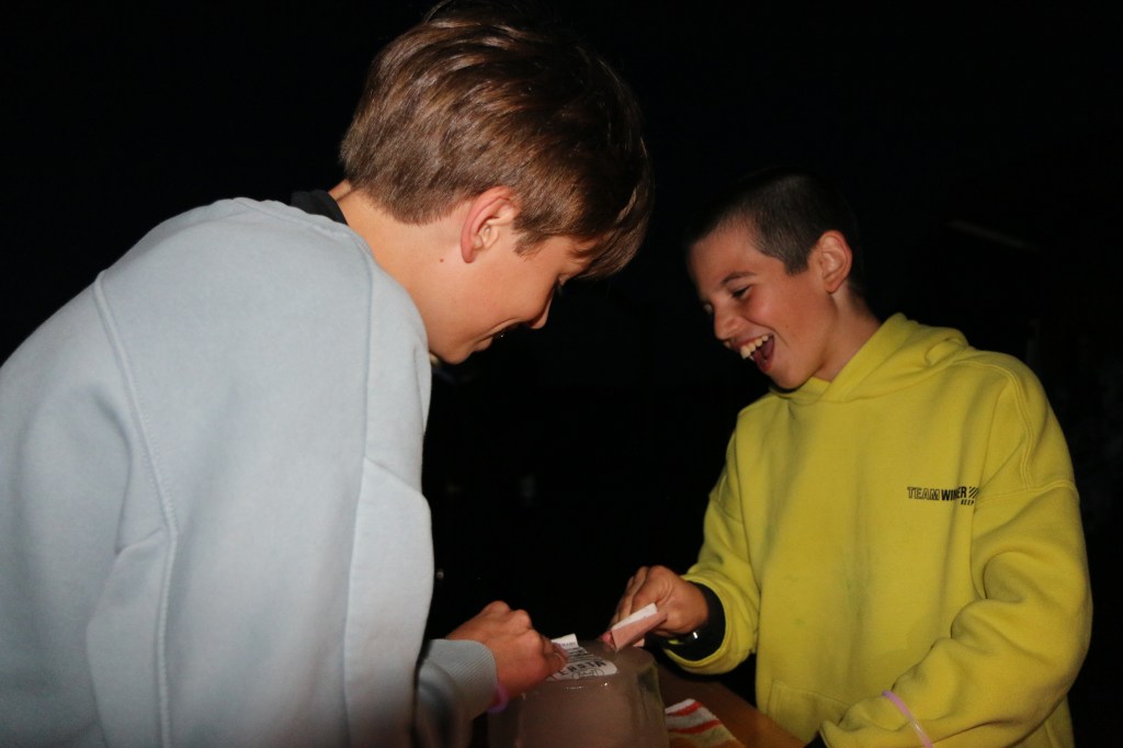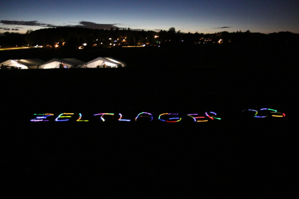 Zum Schluss legten die Kinder mit ihren Knicklichtbändchen gemeinsam den Schriftzug „Zeltlager 23“: