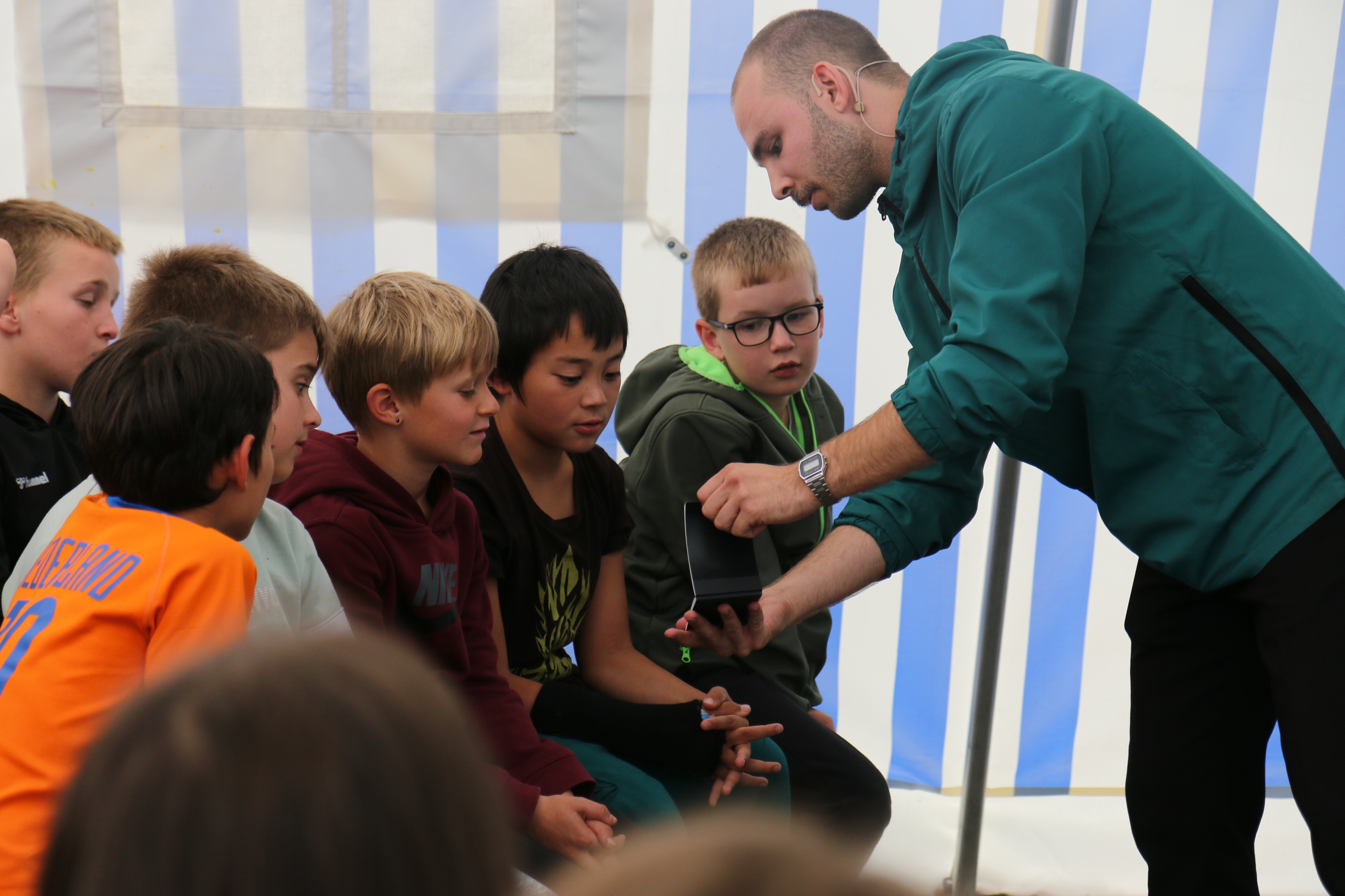 Anschließend füllten die Kinder ihre Zeit mit Völkerball, Discgolf und Tischtennis. Vor allem aber versuchten sie aus den Betreuer*innen herauszupressen, was denn die angekündigte Überraschung heute Nachmittag sei. Doch die Mitarbeiter*innen blieben standhaft und so war die Freude groß, als das Geheimnis gelüftet wurde und die Kinder eine Show des Zauberkünstlers Nikolai Striebels genießen konnten. Aber nicht nur die Kinder bekamen ihren Mund vor lauter Staunen nicht zu, auch die Erwachsenen waren mehr als Baff.
