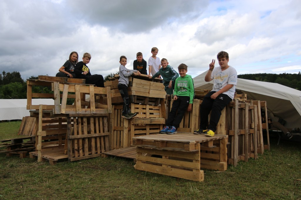 Danach hieß es, die von den Kindern in den letzten Tagen mühevoll gezimmerten Palettenburgen wieder abzubauen. Auch wenn dieser Moment immer wieder traurig (und körperlich anstrengend) ist, so dient er doch auch dafür, dass im nächsten Jahr aus den noch guten Teilen wieder neue Palettenwunderbauten entstehen können.