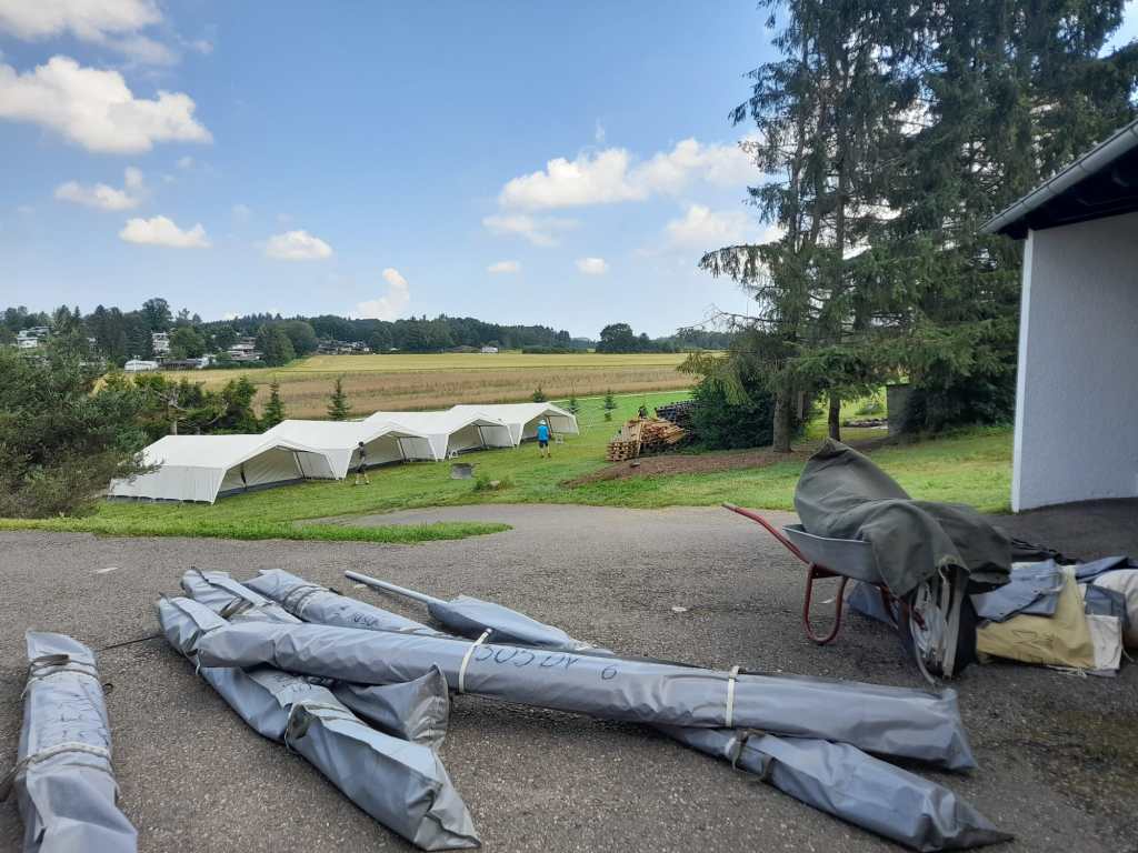 Die Zelte und Feldbetten stehen nun alle und wir freuen uns riesig euch morgen Mittag auf dem Zeltlagergelände willkommen zu heißen.
