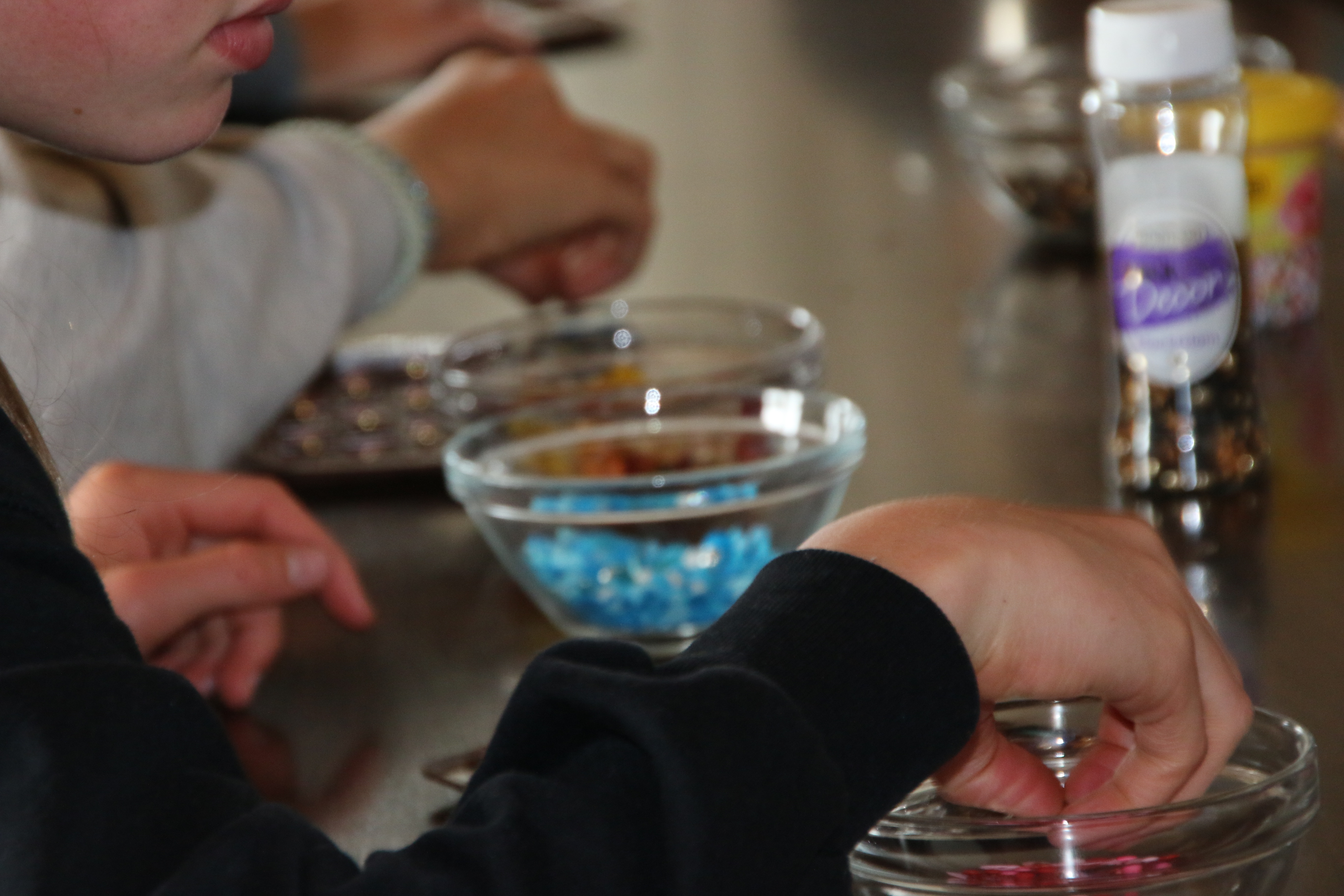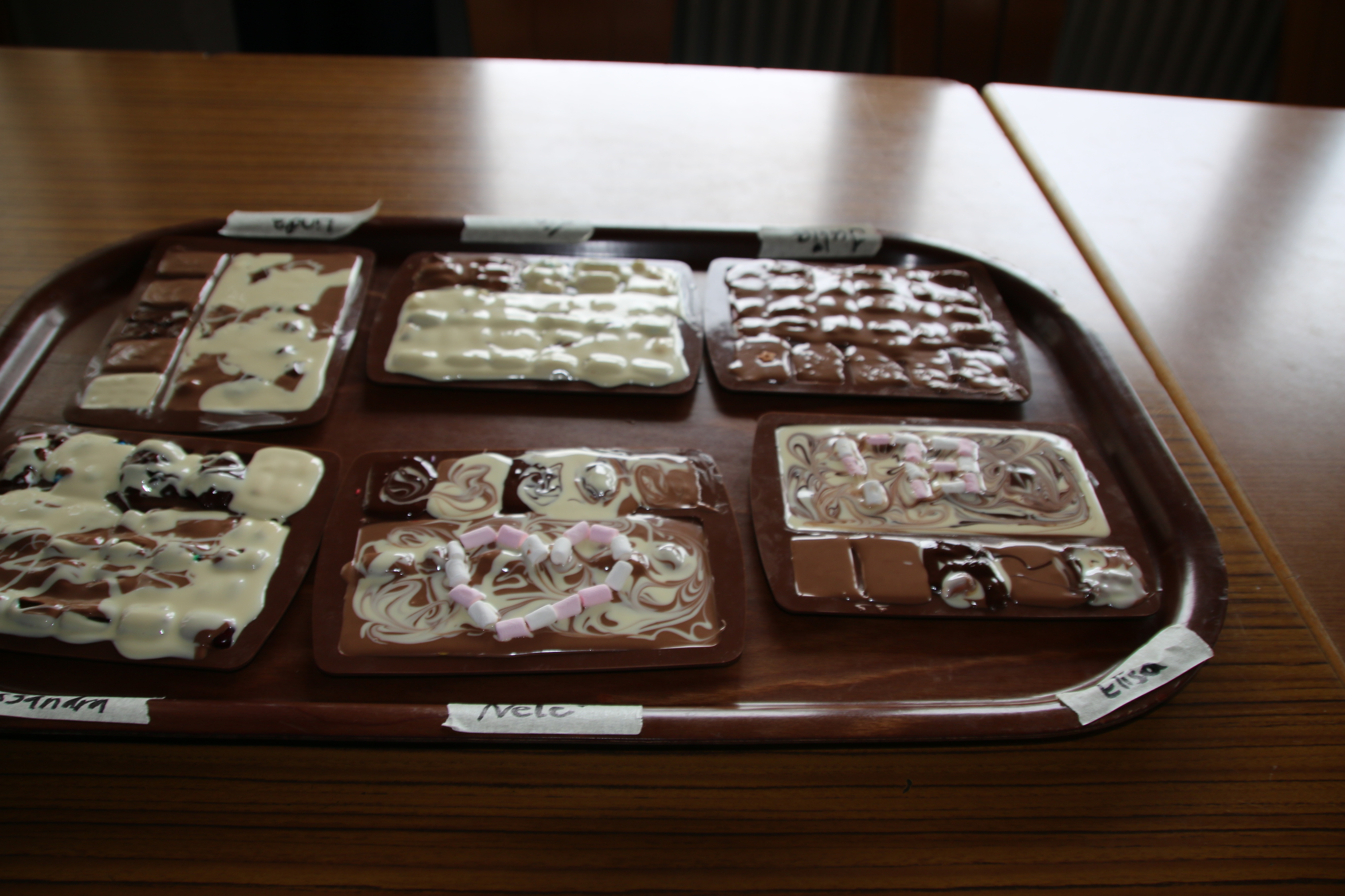 Auch hier herrschte eine gute Stimmung. Aus vielen Zutaten wurde viel leckere Schokolade gemacht.
