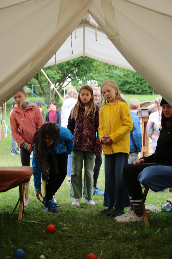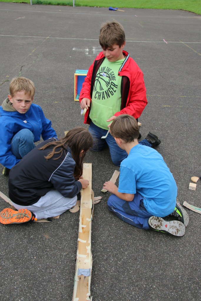 Nach dem Mittagsschmaus und der Mittagsruhe ging es weiter mit „Cool Bauing“, einem Zeltlagerklassiker. Hier konnten die Kinder durch Mini-Spiele Münzen sammeln, um damit Baumaterialien zu sammeln. Mit den Baumaterialien wurde dieses Jahr eine Murmelbahn gebaut. Als die Bauwerke finalisiert waren, wurde geschaut, welche Bahn die Kugel am Weitesten trägt.