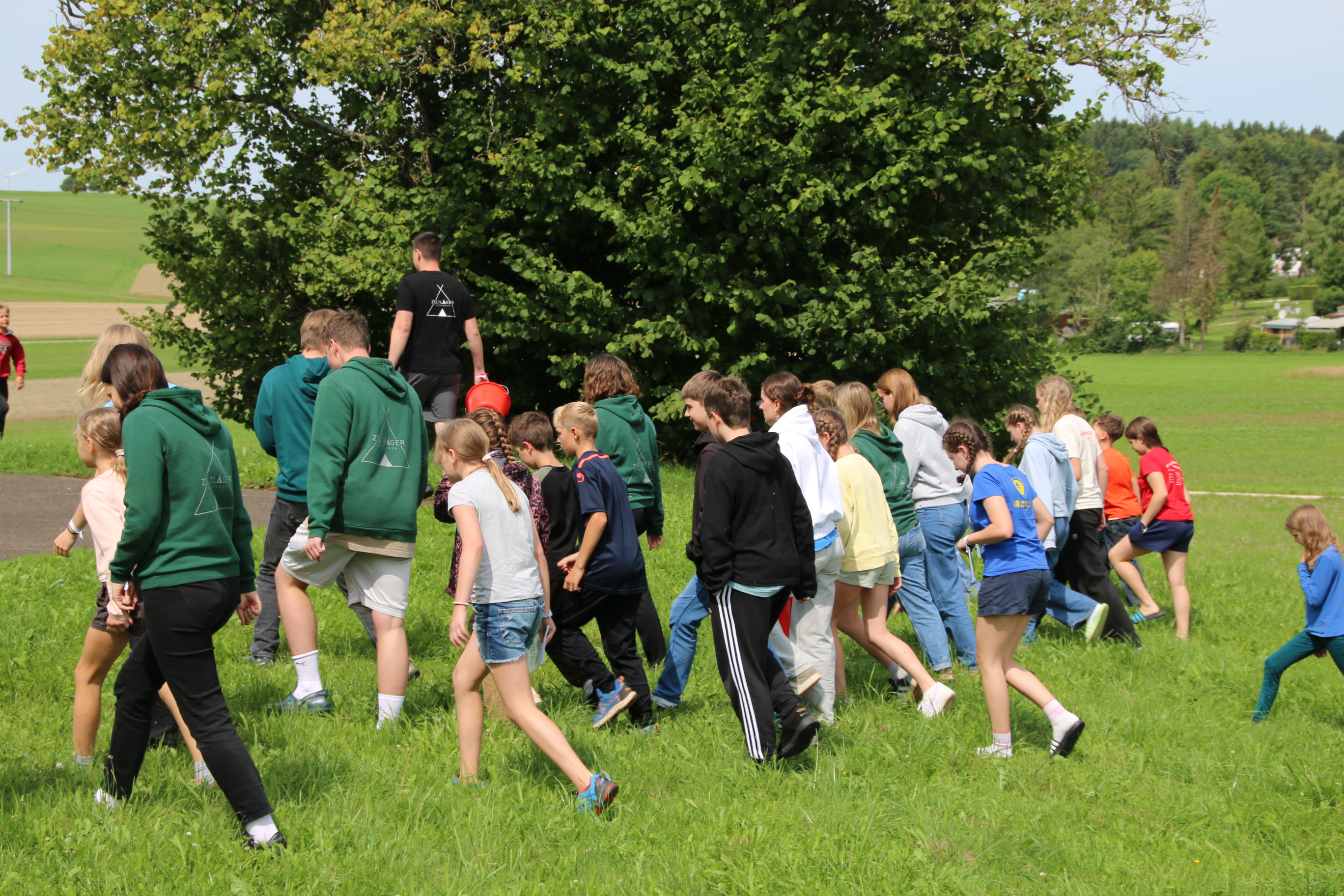 Passend dazu wurde das Lagergelände unter die Lupe genommen: Gemeinsam machten wir eine große Müllkette, um herumliegende Süßigkeitenpapierchen, Baunägel und andere Überbleibsel der letzten Tage aufzusammeln.