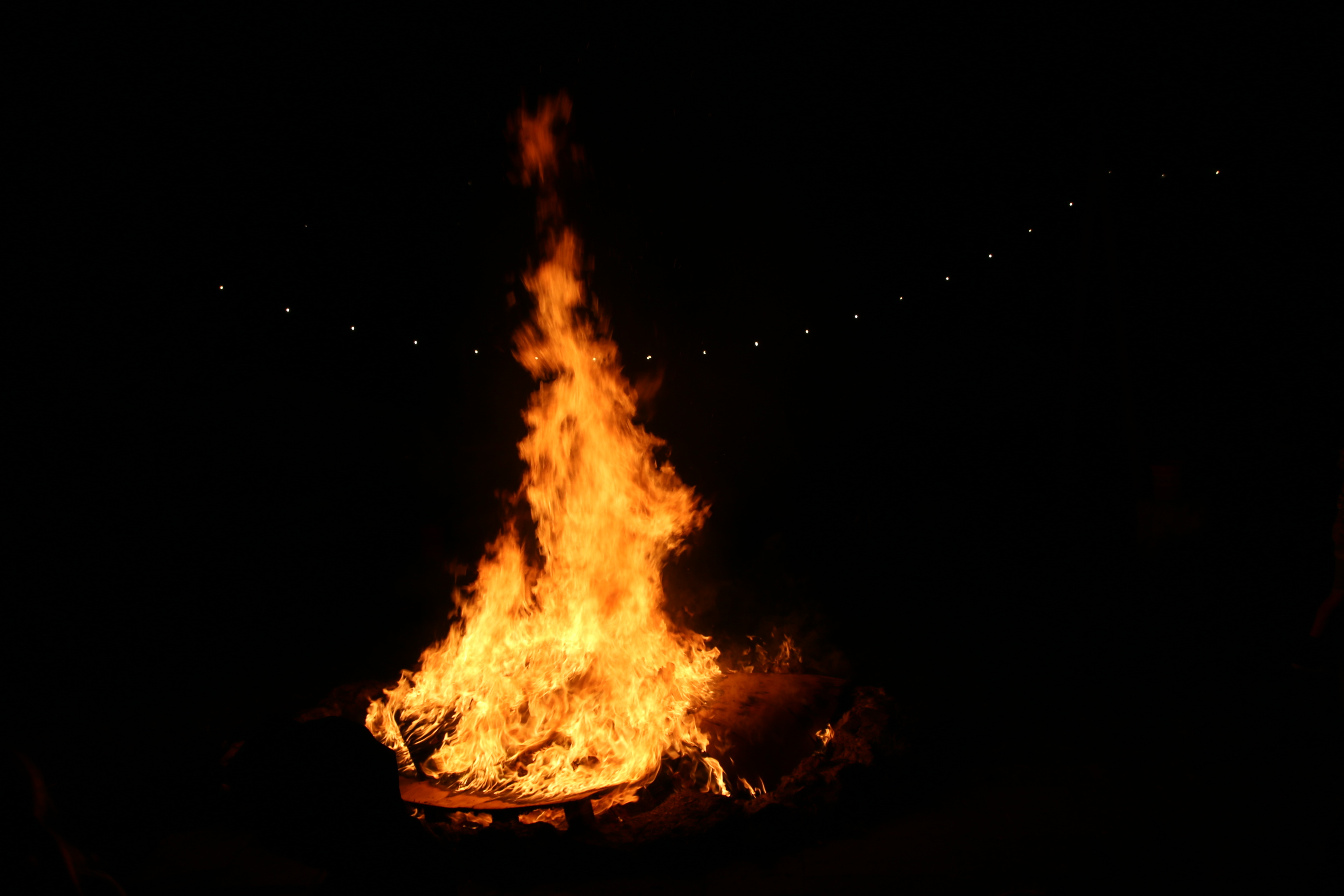 Nachdem das basslastige Ensemble unter Applaus die Bühne verlassen hatte, wurde das vorbereitete Holzkonstrukt feierlich den Flammen übergeben – und der Platz erstrahlte im warmen Licht des Feuers.