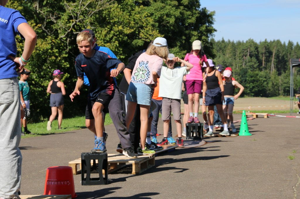 Mittags galt es, an verschiedenen Stationen auf dem Zeltplatz Märkchen zu erspielen, mit denen man Dinge ersteigern konnte, um die Schlucht zu überqueren. Am Ende wurde die Schlucht mit vereinten Kräften erfolgreich überquert.