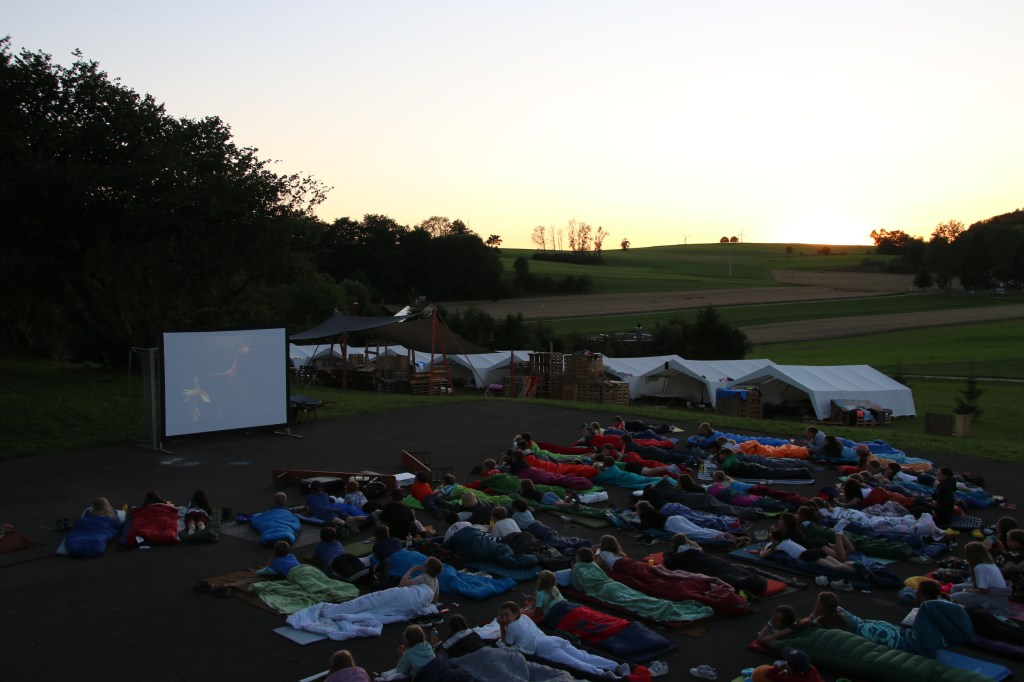 Abends fand zur Entspannung das traditionell stattfindende Openair-Kino statt. Dafür versammelten sich alle, eingekuschelt in die Schlafsäcke und Decken auf dem Sportplatz.
